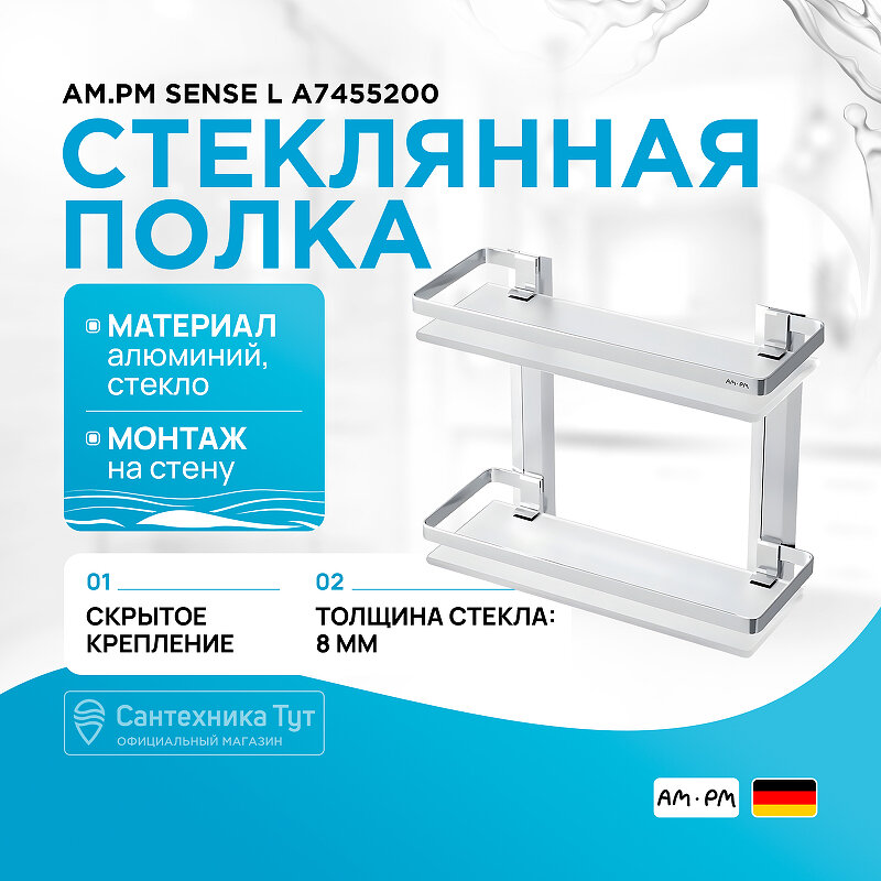 Полка для ванной комнаты AM.PM Sense L настенная двухуровневая стеклянная интересное: