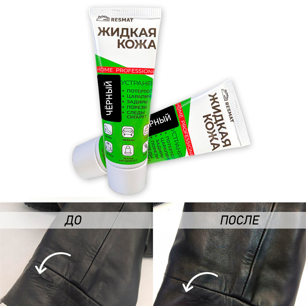 Жидкая кожа для мебели, одежды, восстановитель кожи Resmat 30 мл в тубе, черная