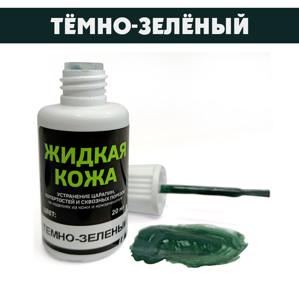 Жидкая кожа, восстановитель кожи (Темно-зеленый цвет) для ремонта мебели, авто, обуви и прочих кожаных изделий, без блистера, 20 мл
