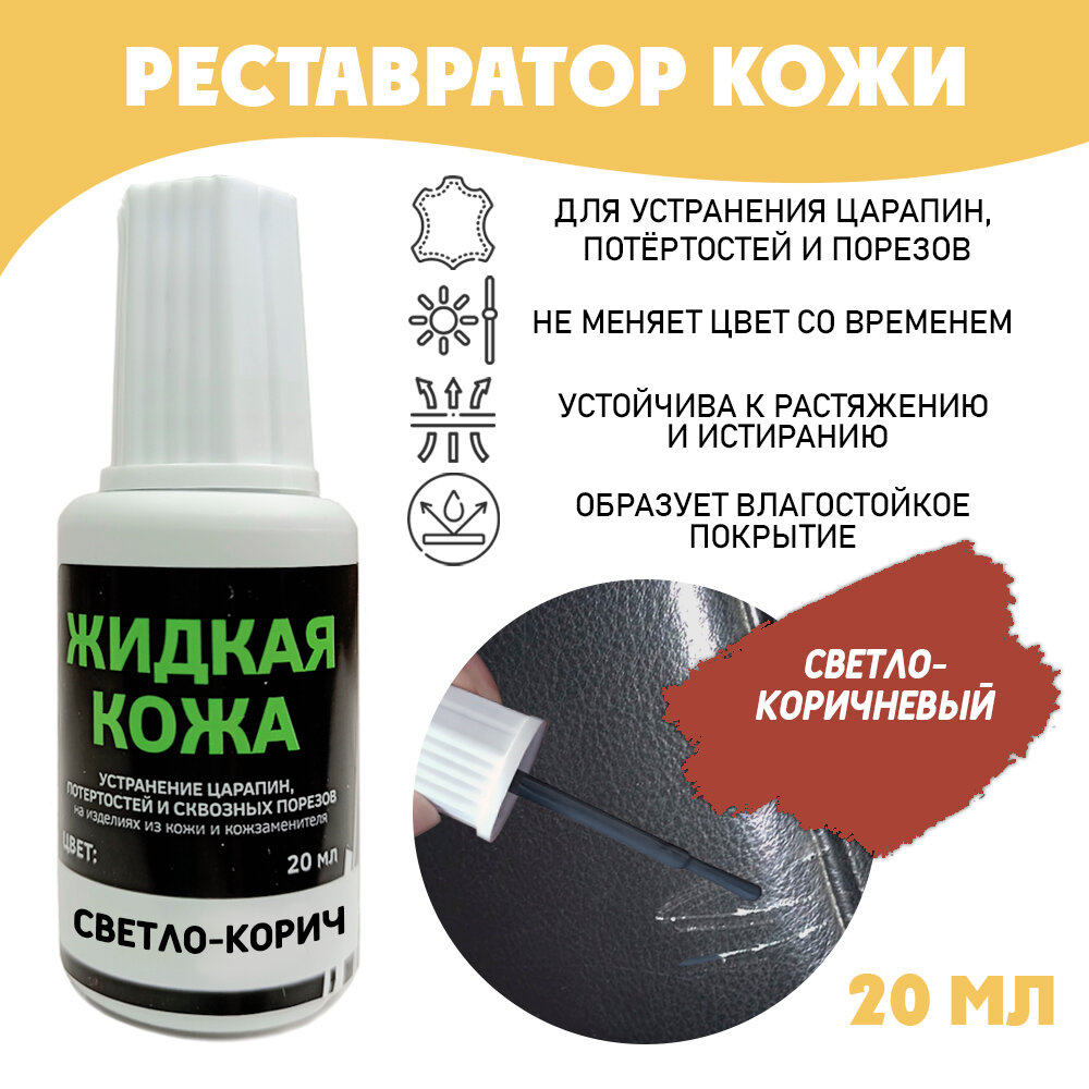 Жидкая кожа, восстановитель кожи (Темно-бежевый цвет) для ремонта мебели, авто, обуви и прочих кожаных изделий, без блистера, объем 20 мл