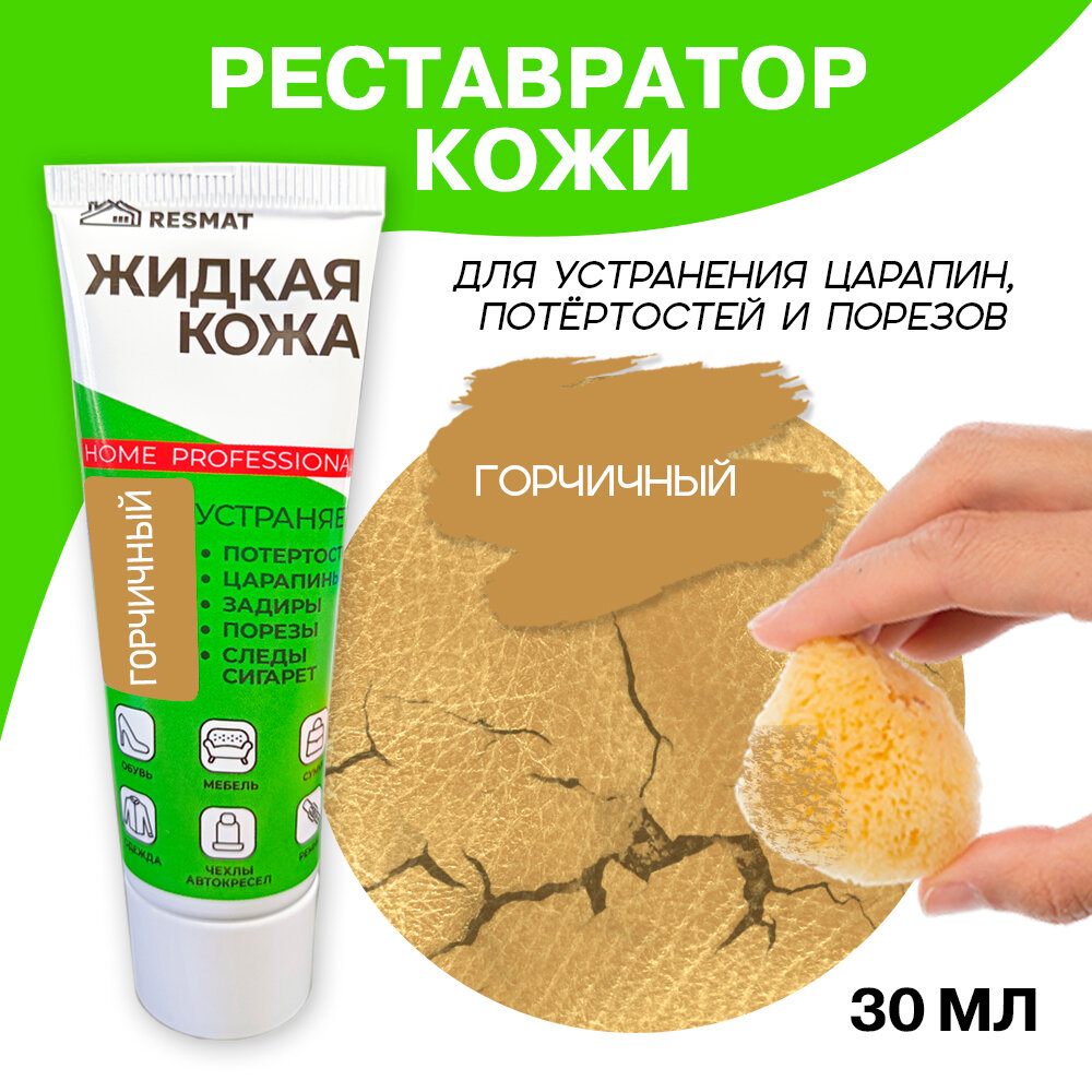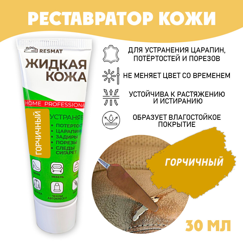 Жидкая кожа для мебели, одежды, восстановитель кожи Resmat 30 мл в тубе, Горчичная