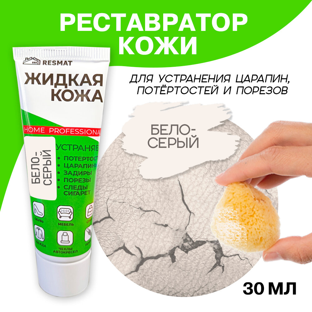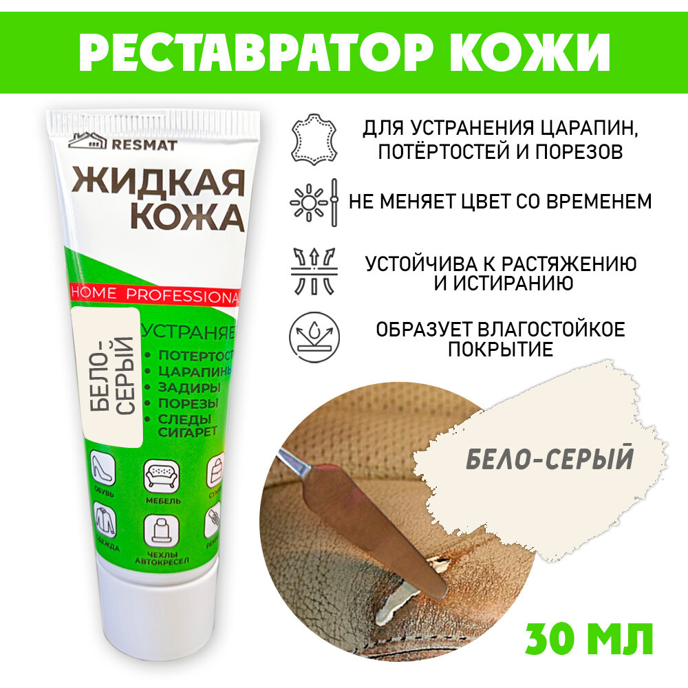 Жидкая кожа для мебели, одежды, восстановитель кожи Resmat 30 мл в тубе, бело-серая