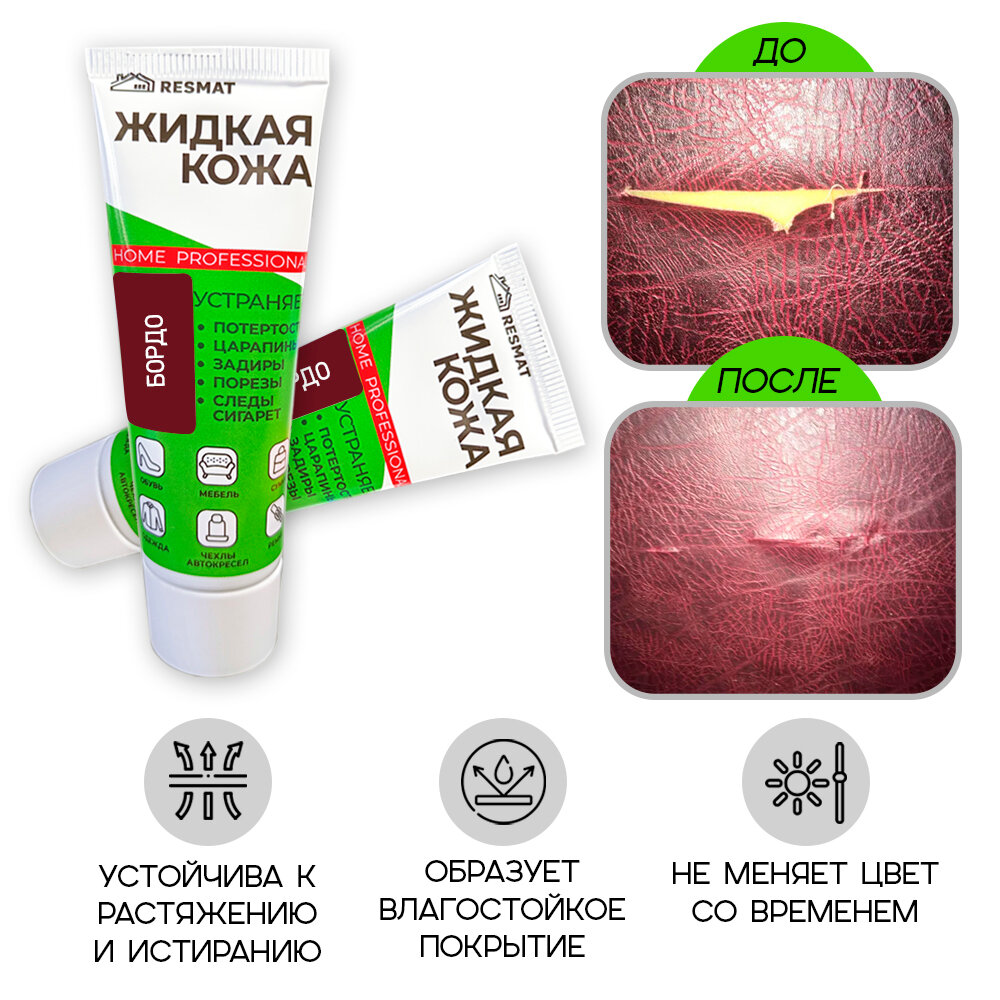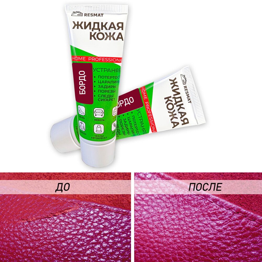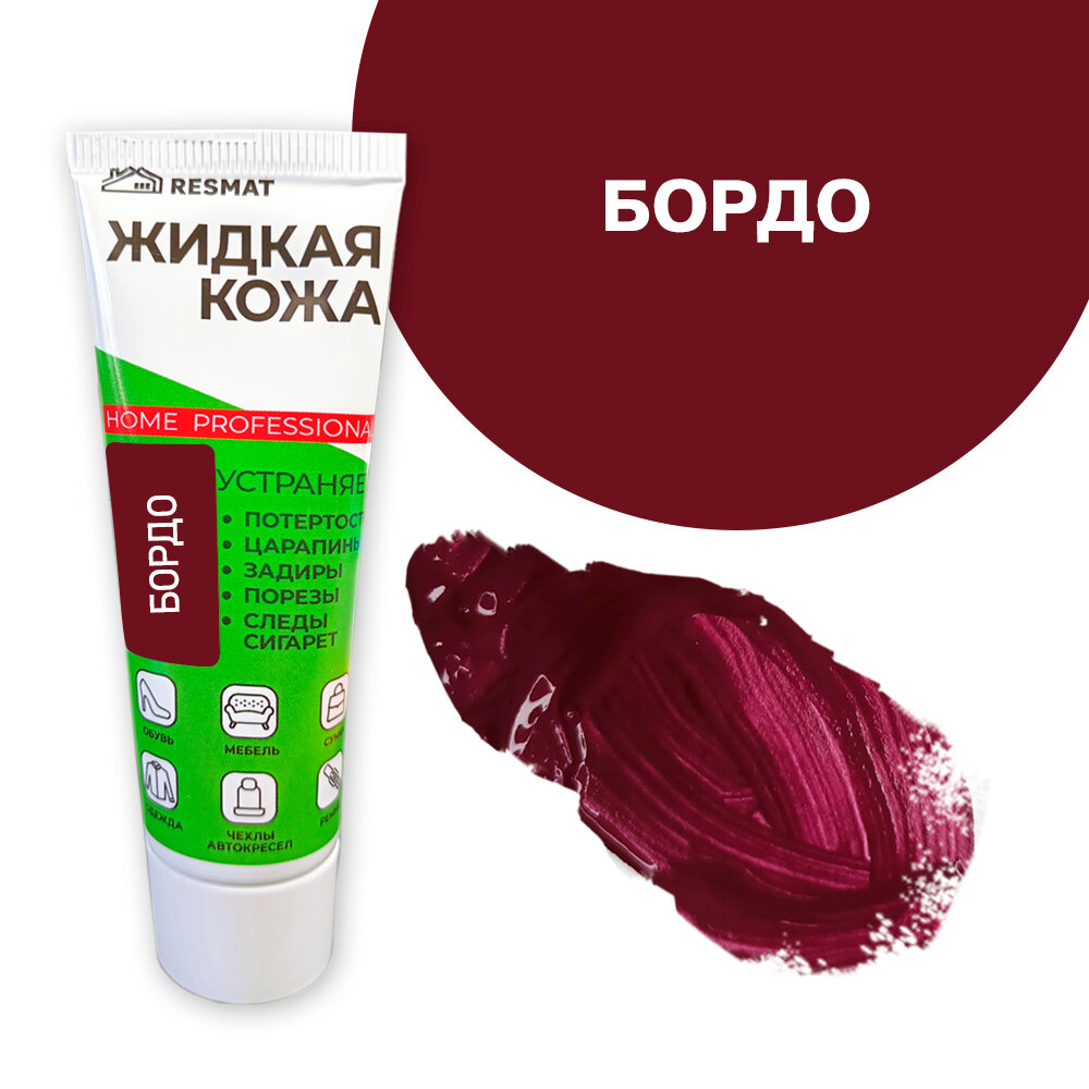 Жидкая кожа для мебели, одежды, восстановитель кожи Resmat 30 мл в тубе, Бордо