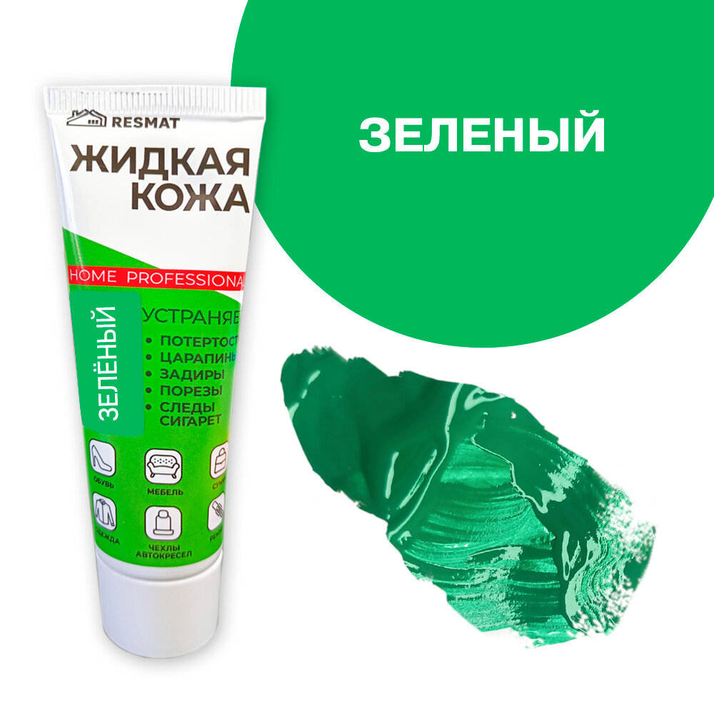 Жидкая кожа для мебели, одежды, восстановитель кожи Resmat 30 мл в тубе, зеленая