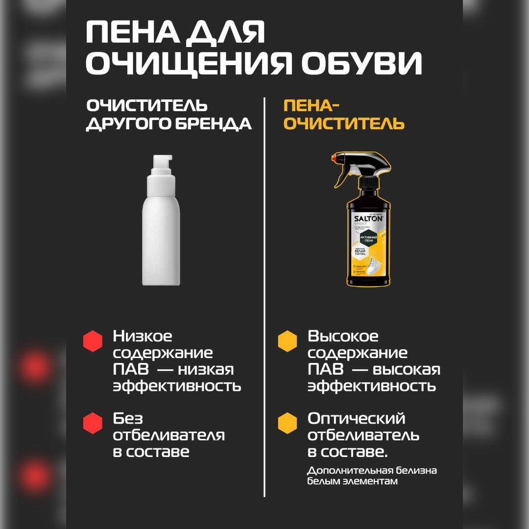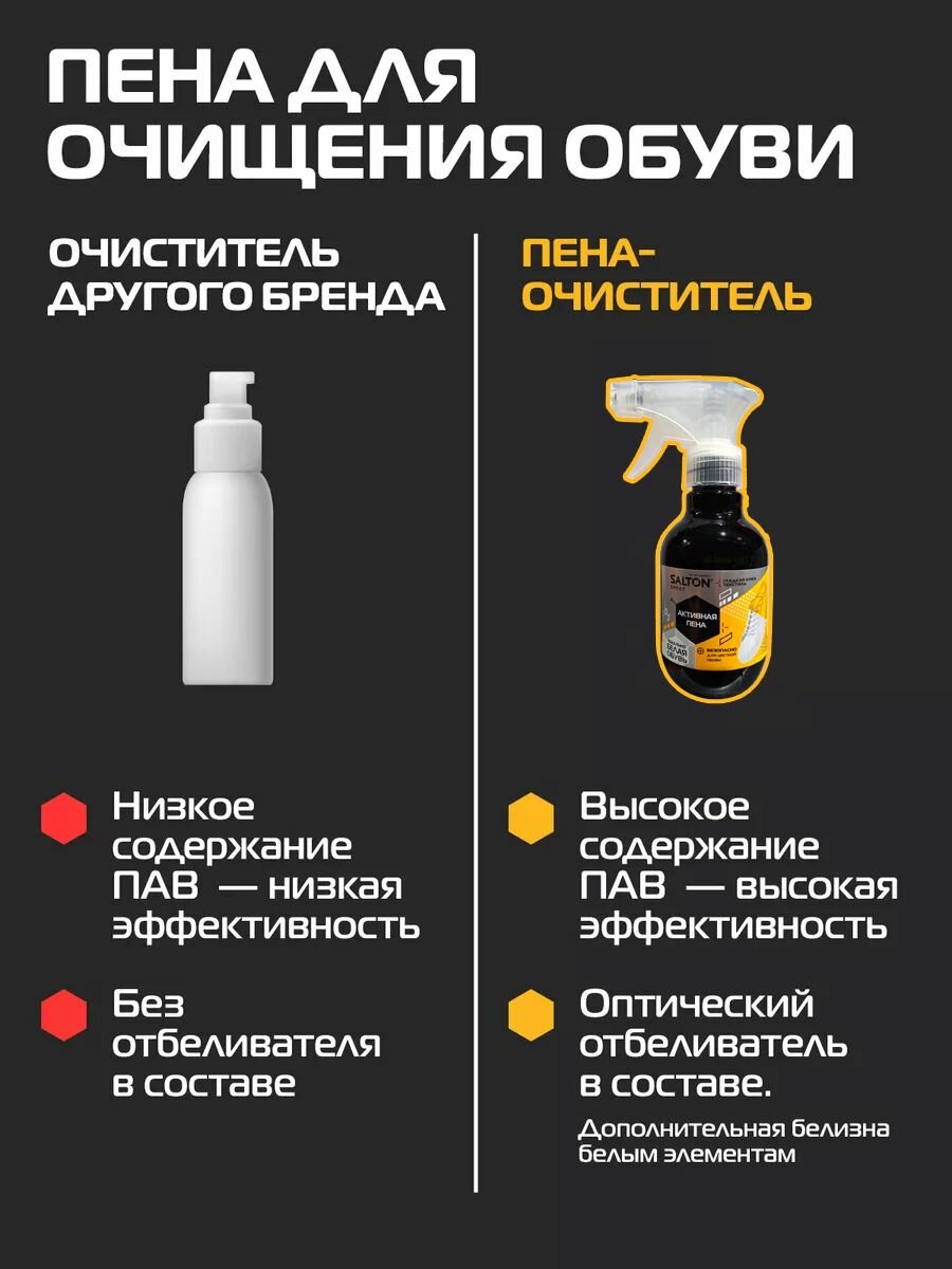 Пена для для белой и цветной обуви кроссовок очиститель кожи замши нубука и текстиля уход, Salton 150 мл х 2 шт