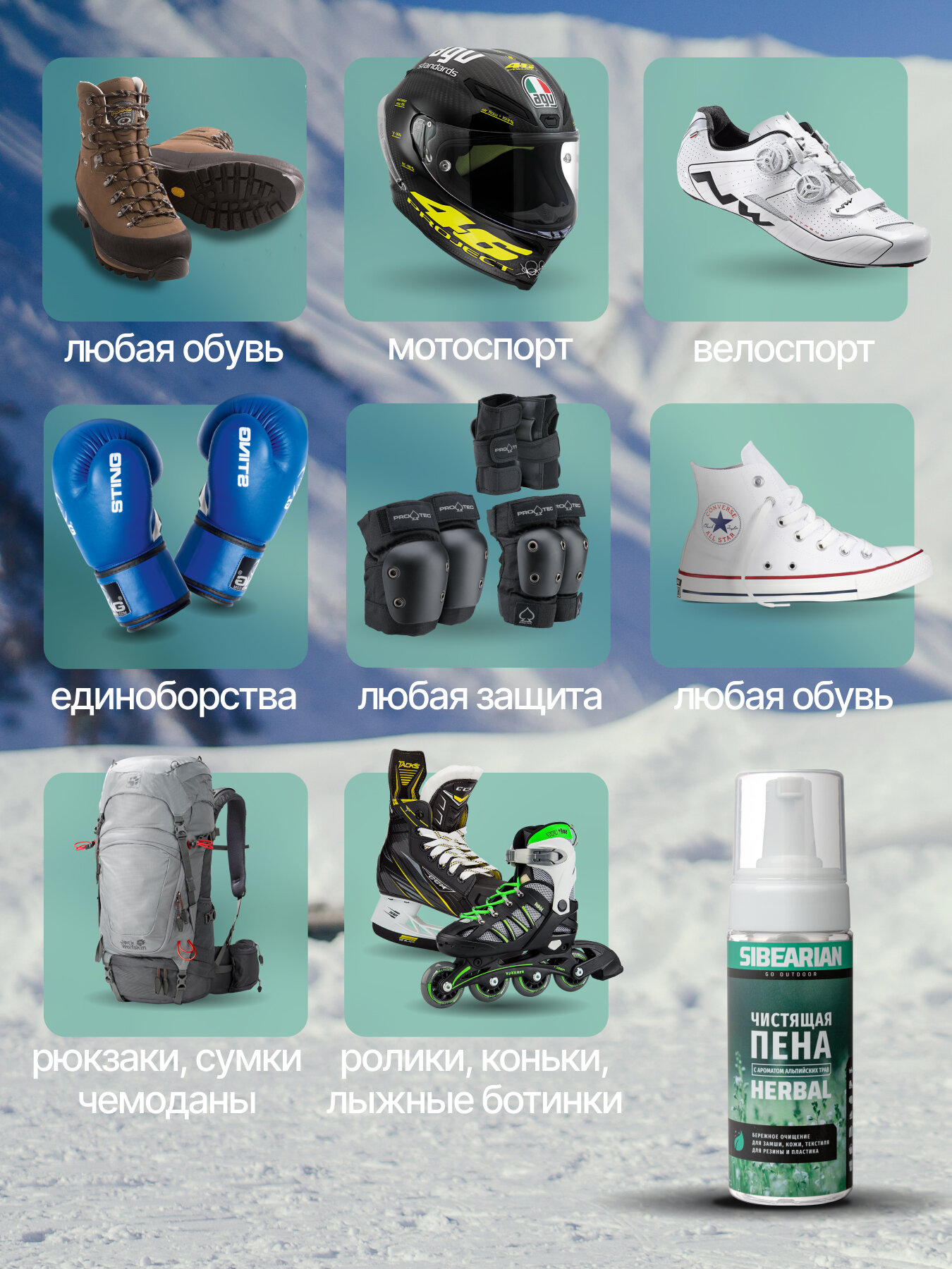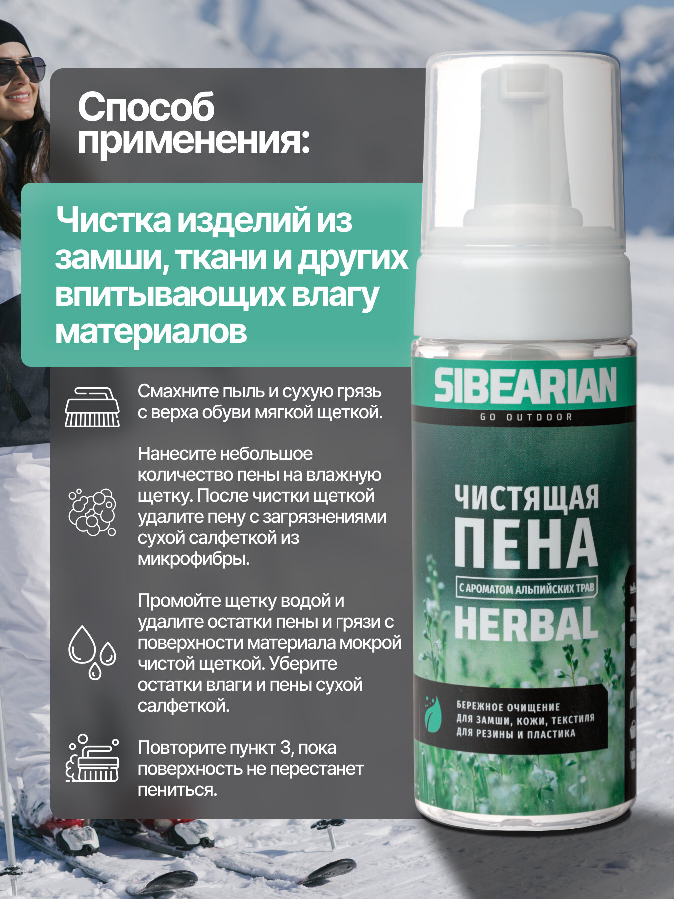 SIBEARIAN Чистящая пена Bubble для кожи, замши, текстиля и резины