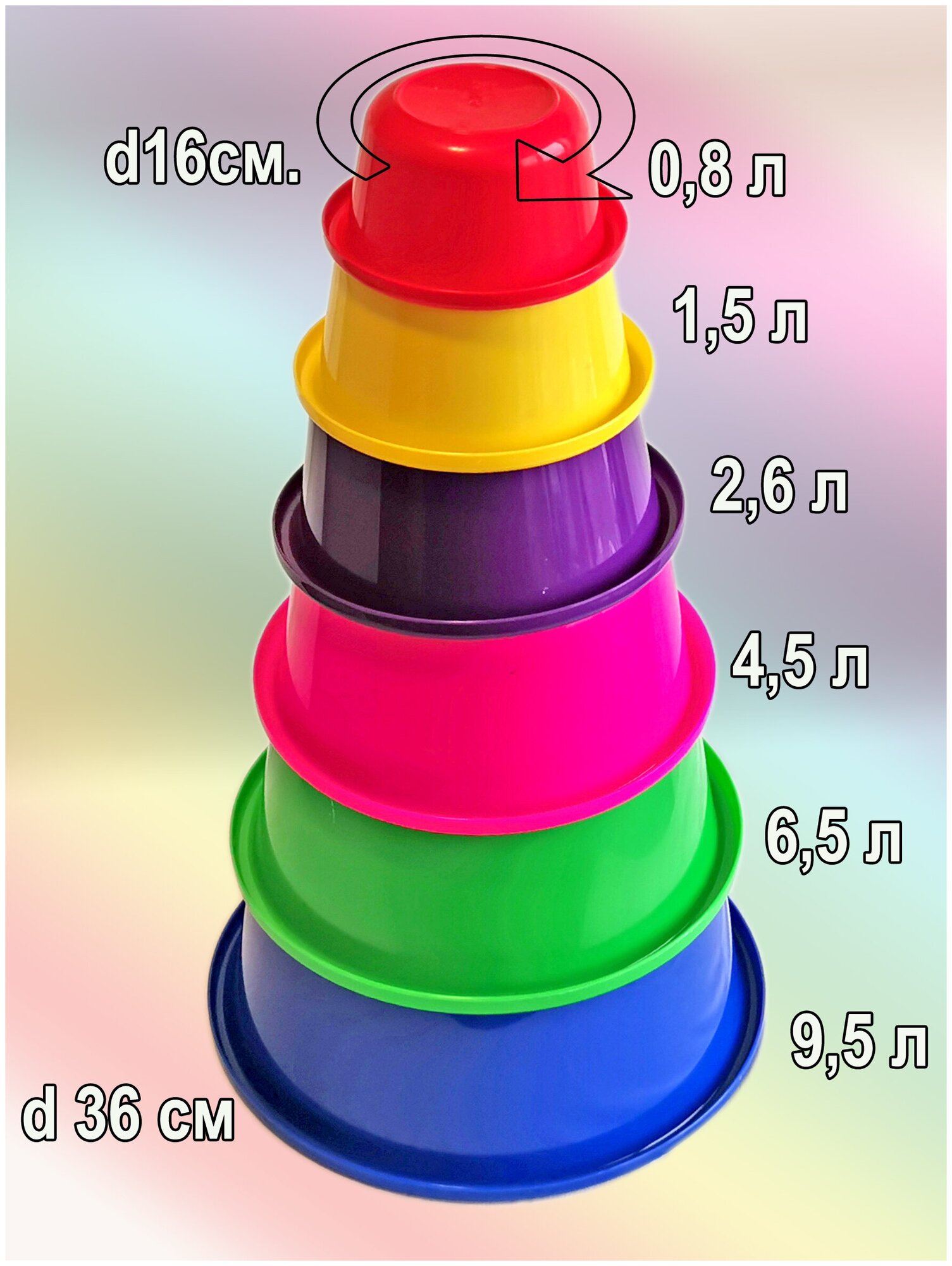 Тазы ЛПМ Набор тазов 6 шт разноцветный 9,5л - 0,8л интересное: