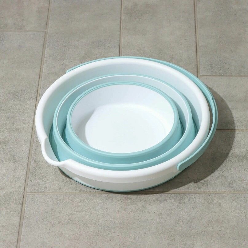 Таз складной «Флекс», 10 л, 39.5×40×5.5 см, морская волна
