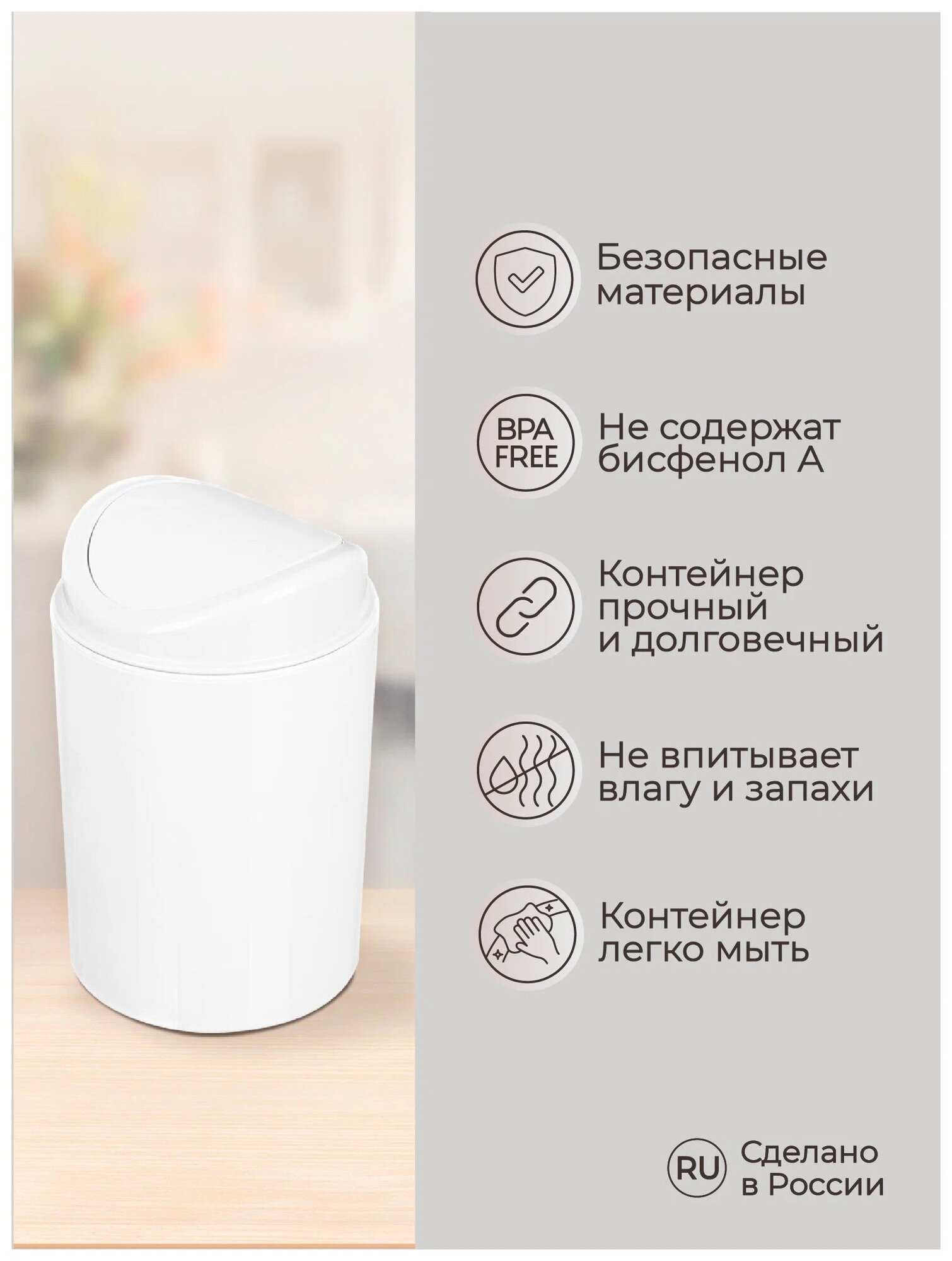 Контейнер для мусора Бытпласт, 1 л, белый