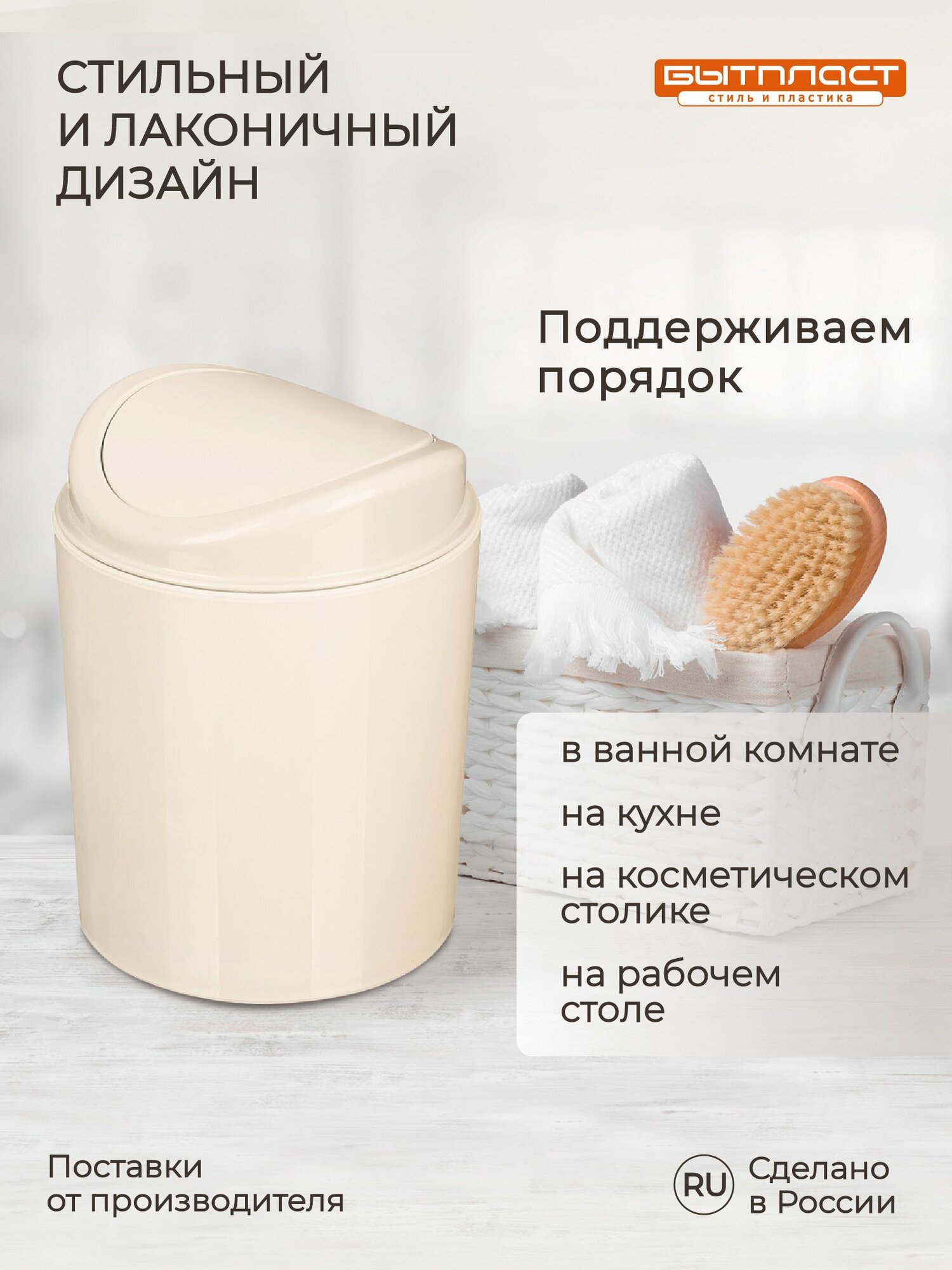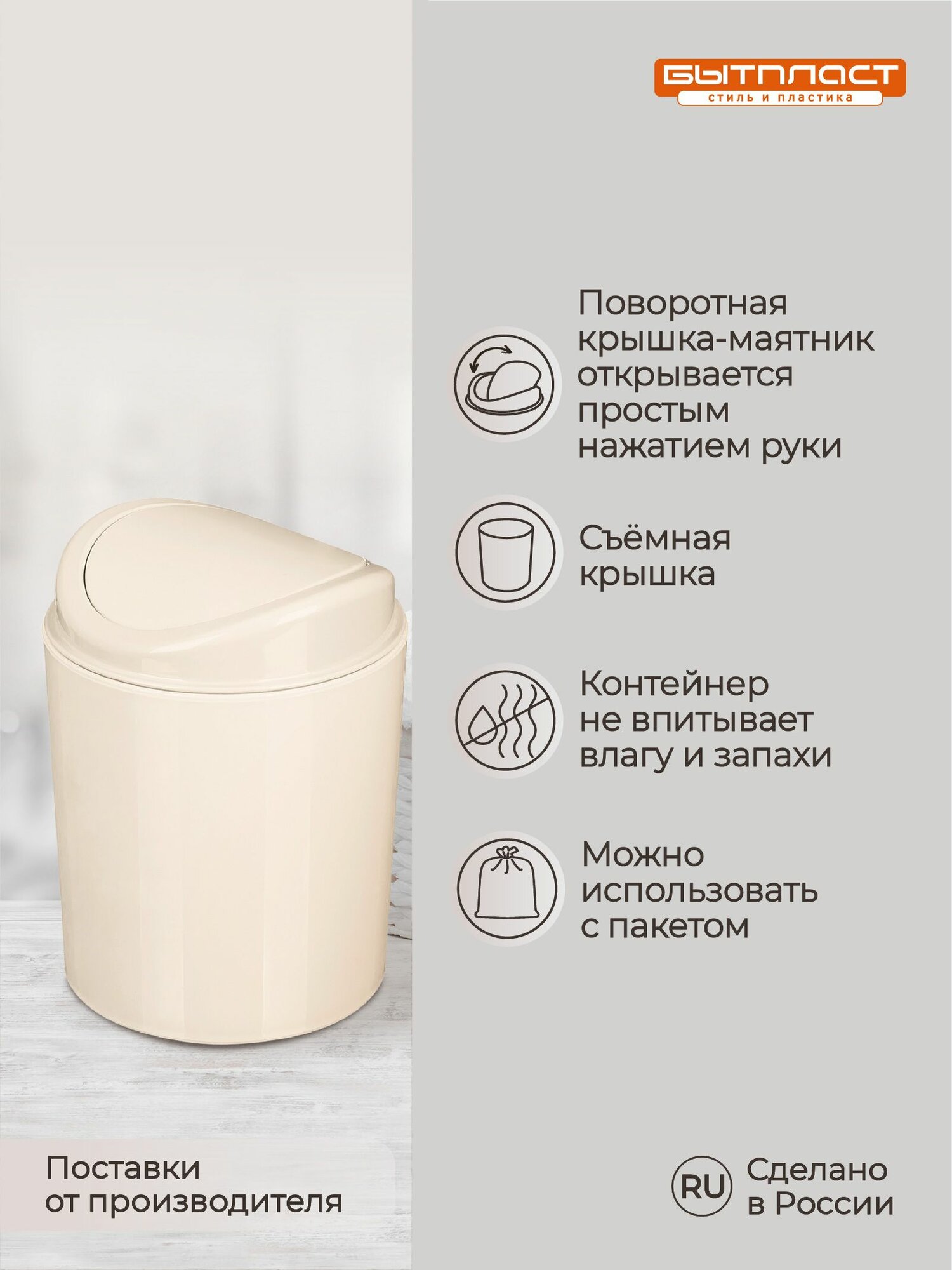 Контейнер для мусора 115х115х153мм 1л (Бежевый) интересное: