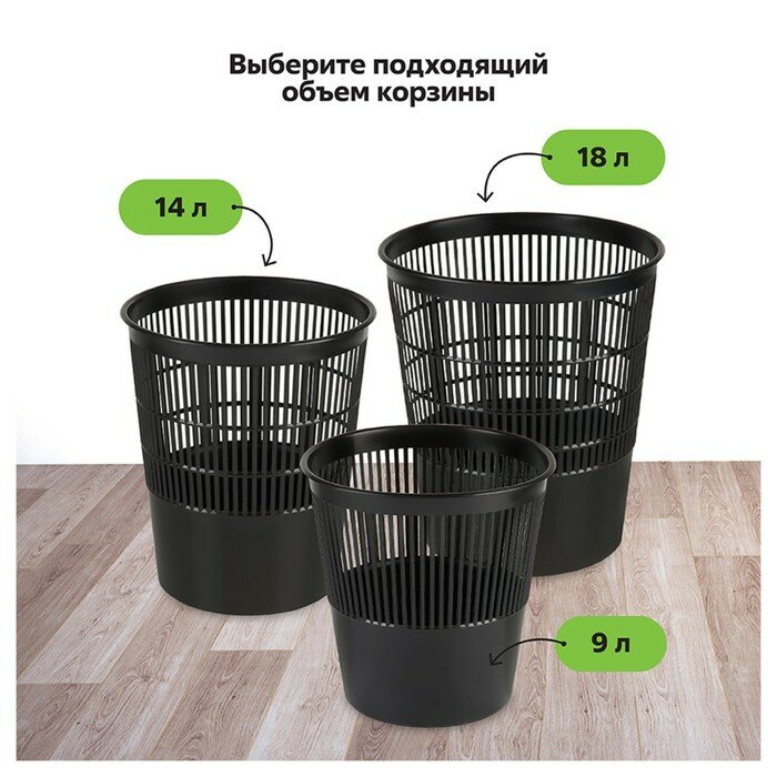 Корзина для бумаг 18 л, сетчатая, чёрная, высота 330 мм