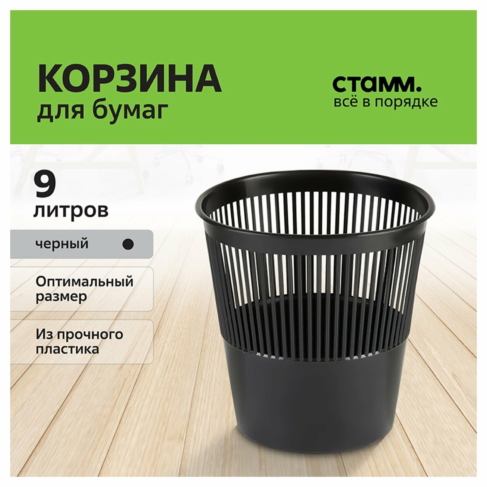 Стамм Корзина для бумаг 9 л цвет черный