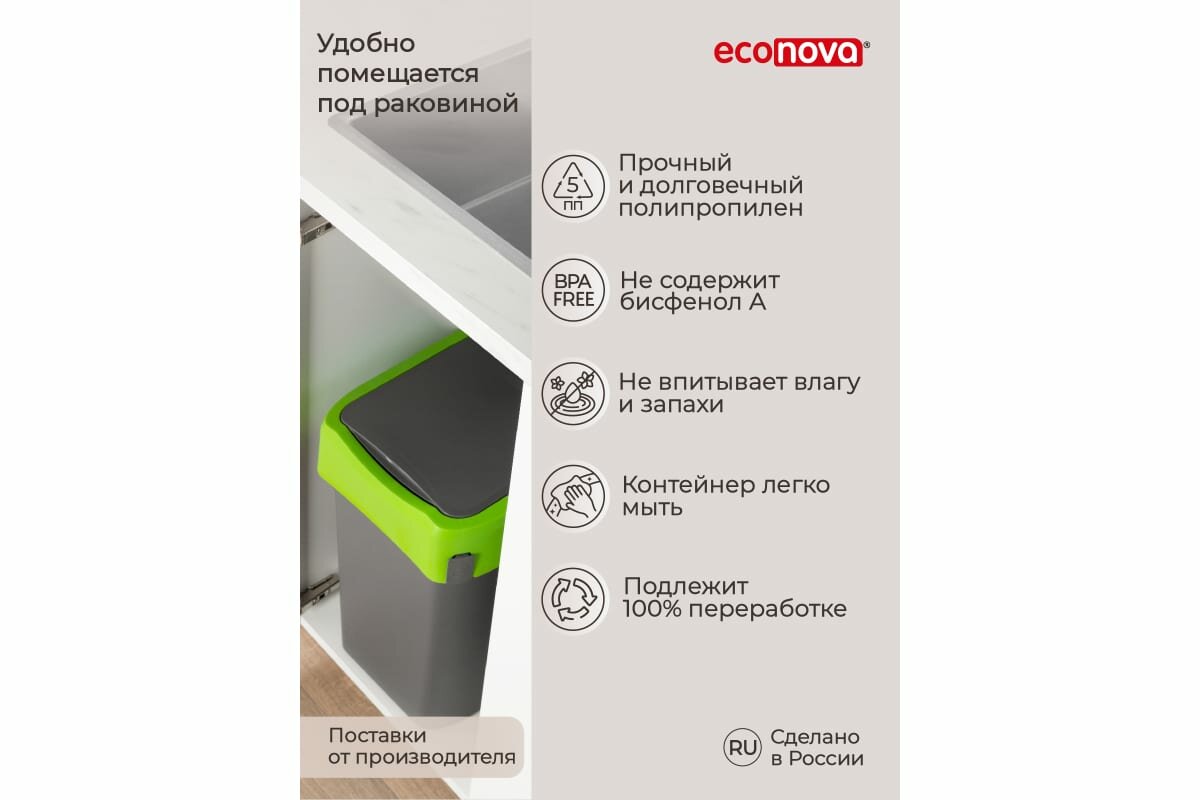 Бытпласт контейнер для мусора "SMART BIN" 25Л (Зеленый) 434214809