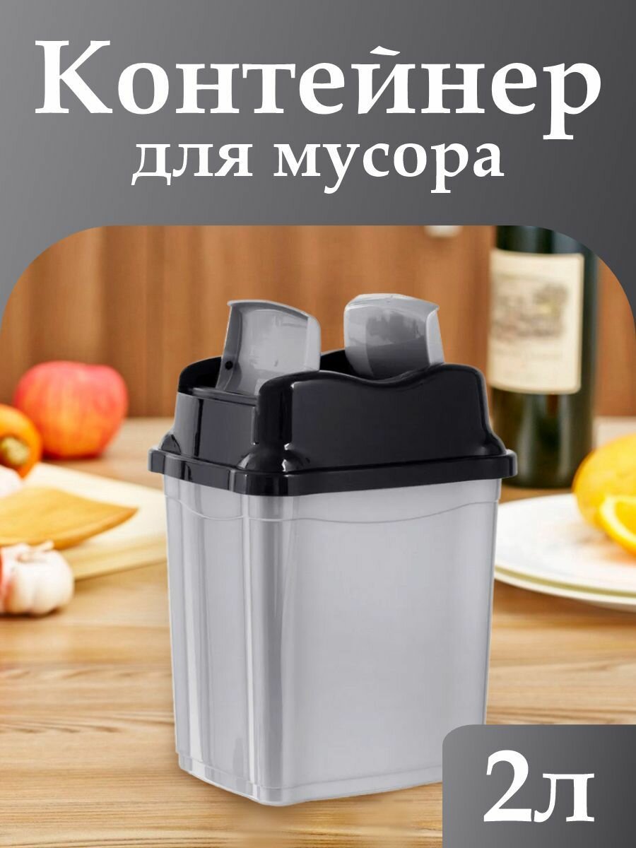 Контейнер elfplast "Proff" для мусора 2л 2шт, серый/черный