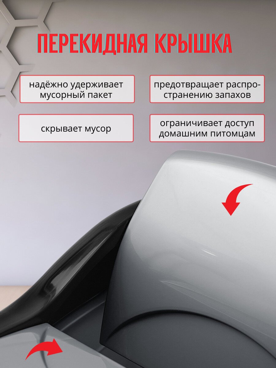 Мусорное ведро Proff, 9 литров, контейнер для мусора, с крышкой, серый/чёрный