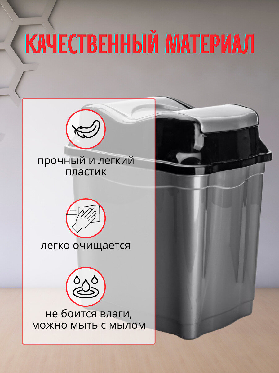 Настольное мусорное ведро PROFF 5 литров, пластиковое.