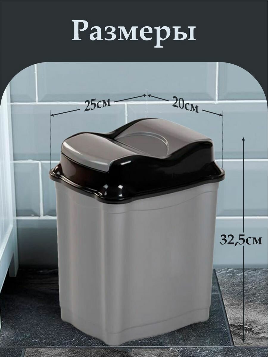 Мусорное ведро Proff, 9 литров, контейнер для мусора, с крышкой, серый/чёрный