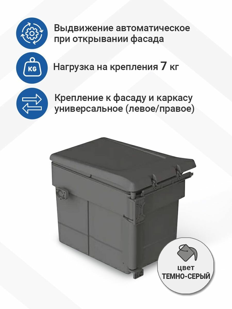 Ведро кухонное на дверцу с автоматическим открыванием крышки Тёмно-серое 20 литров