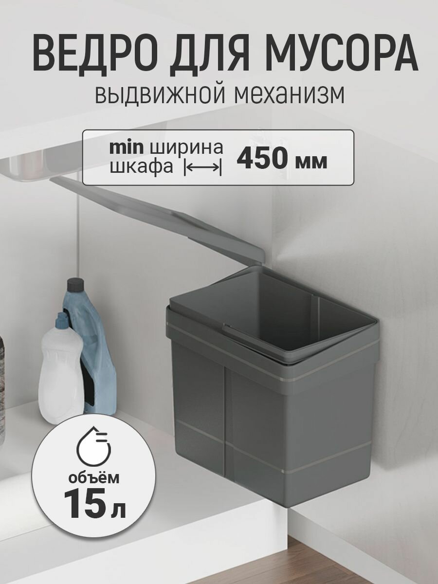 Встраиваемое ведро для мусора (15л), UNIONPLAST Италия, пластик темно-серый интересное: