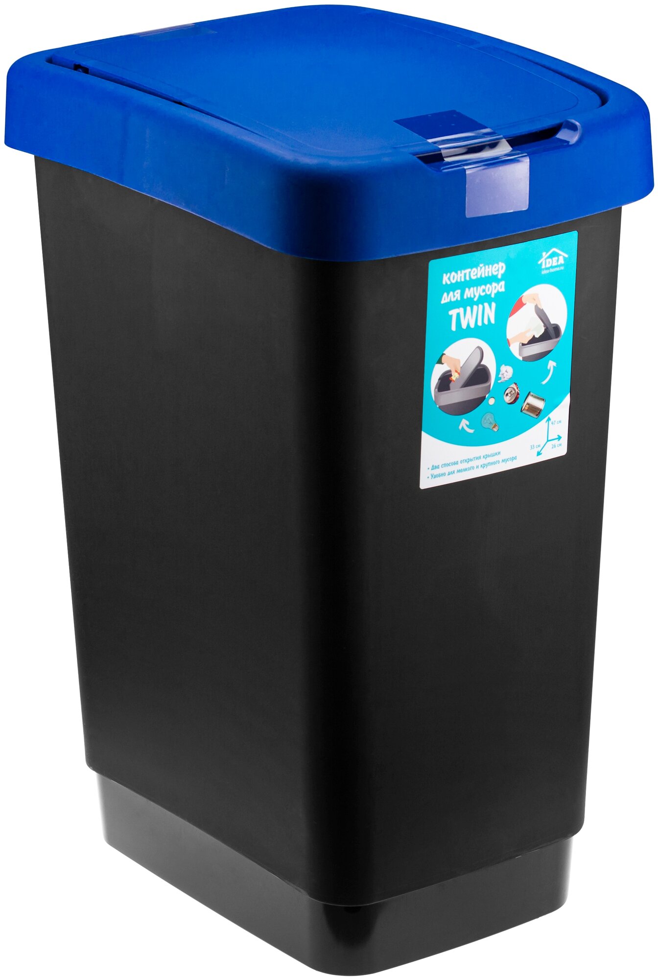Контейнер для мусора Idea / Идея твин КН2479 с крышкой, пластик черно-синий, 18л / ведро