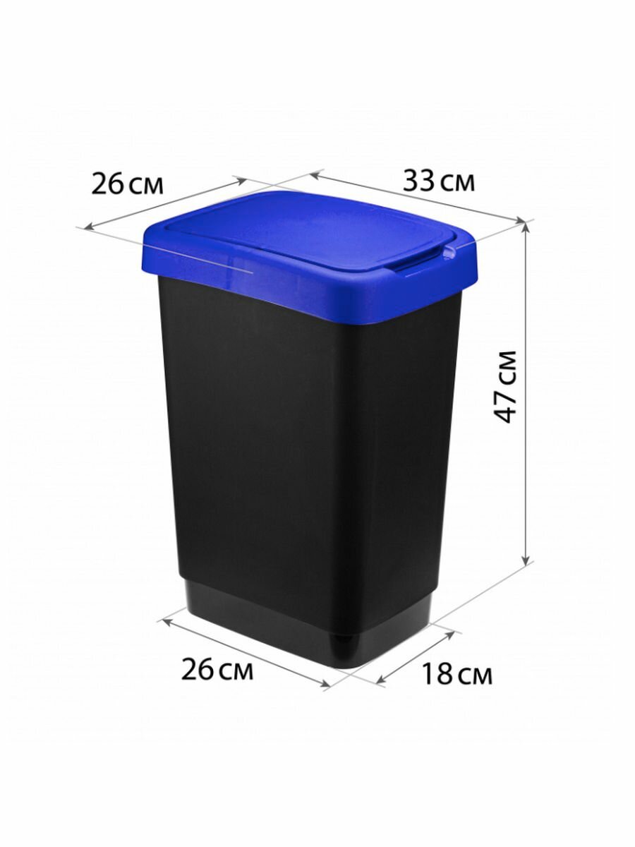 Контейнер для мусора Idea / Идея твин КН2479 с крышкой, пластик черно-синий, 18л / ведро