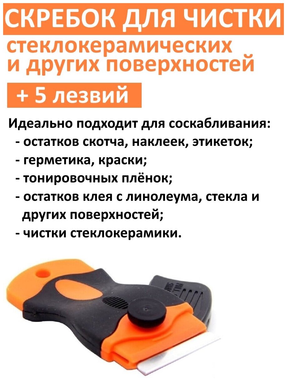Скребок для чистки стеклокерамики стекла плитки керамических индукционных поверхностей плит окон стеклоочиститель стекломой оранжевый