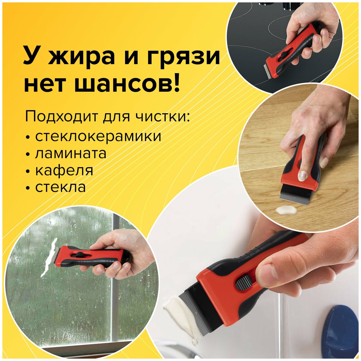 Скребок для любых поверхностей (стеклокерамика, стекло, плитка) BRAUBERG BASE, фиксатор, 607458