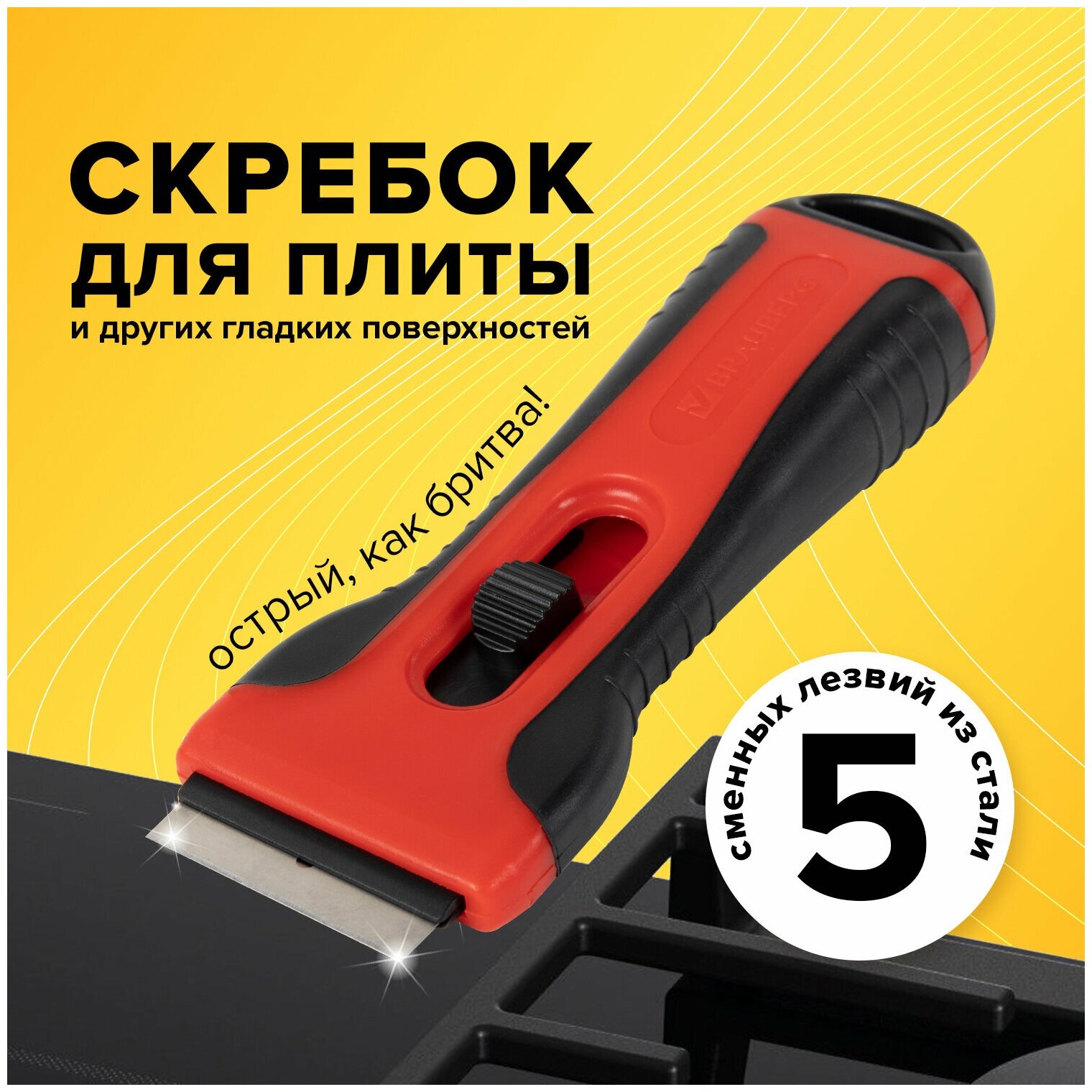 Скребок для любых поверхностей (стеклокерамика, стекло, плитка) BRAUBERG "SUPER", 5 лезвий, 606761