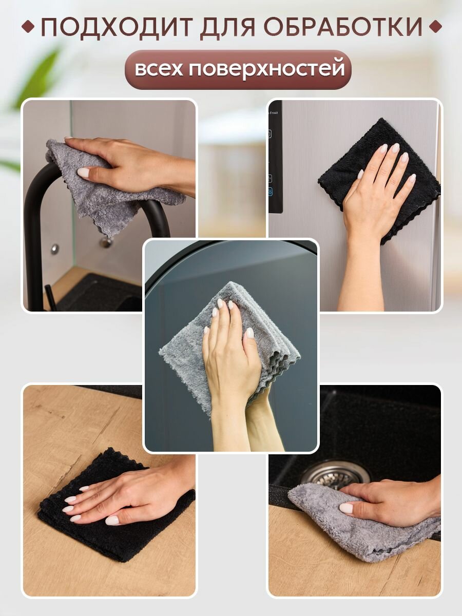 Салфетки для уборки из микрофибры черные, 10 штук
