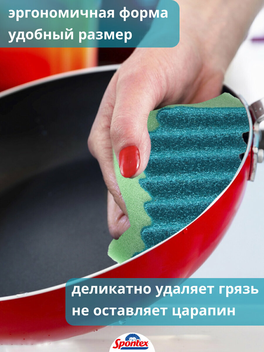 Губки для мытья посуды универсальные "SCRUB & FLEX", 1 уп/3 шт, зеленый интересное: