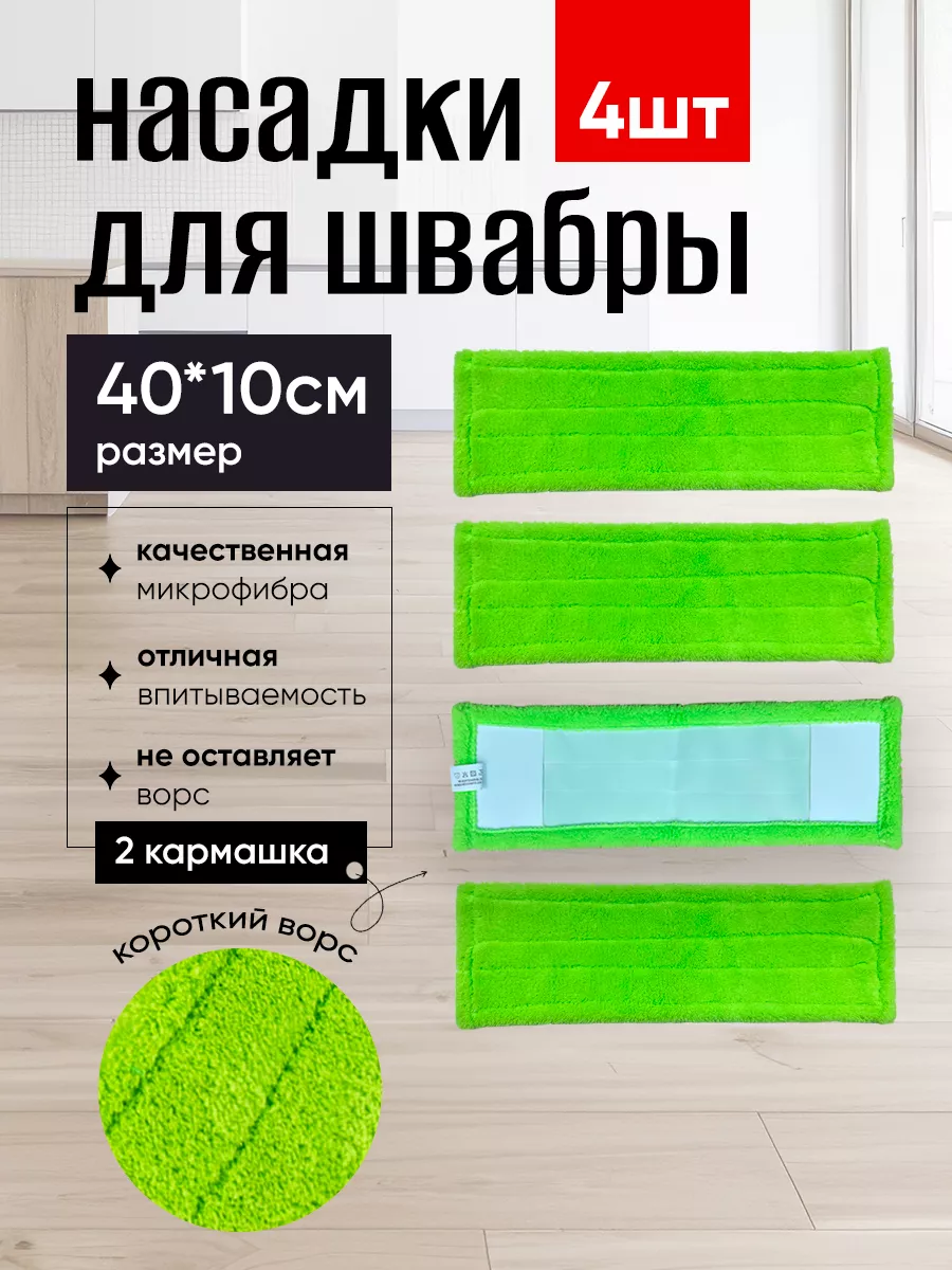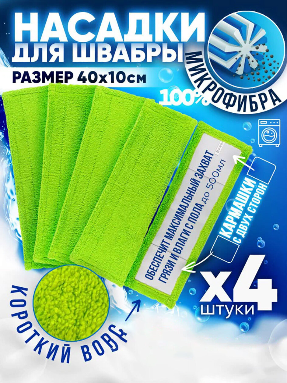 Купить Насадка для швабры 40х10см микрофибра 4шт с коротким ворсом, Burrg
