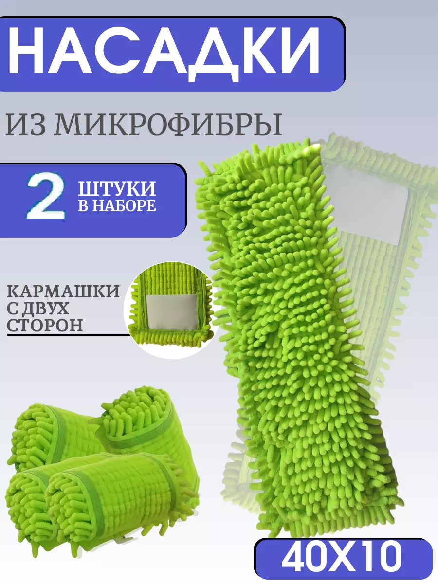 Купить Насадка для швабры 40х10см микрофибра 2шт с длинным ворсом, Burrg
