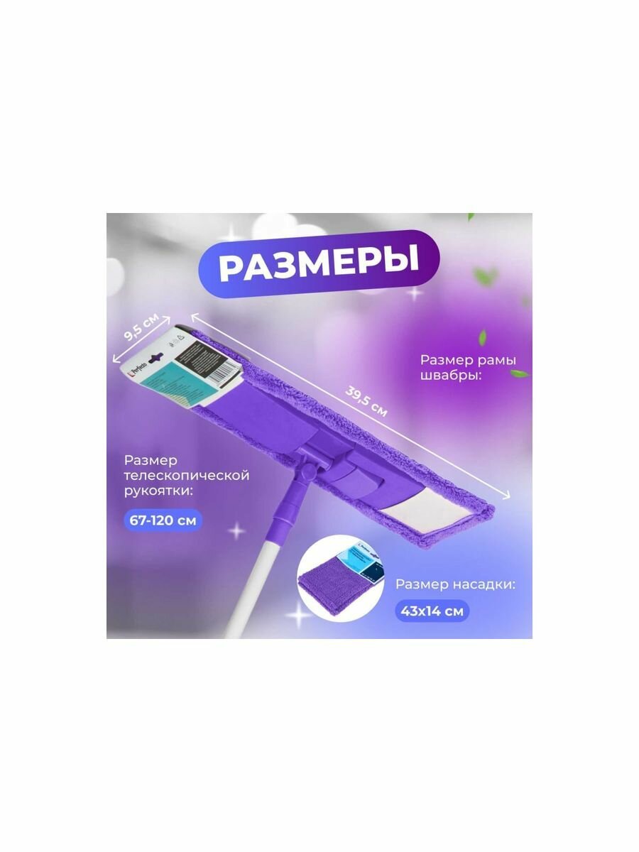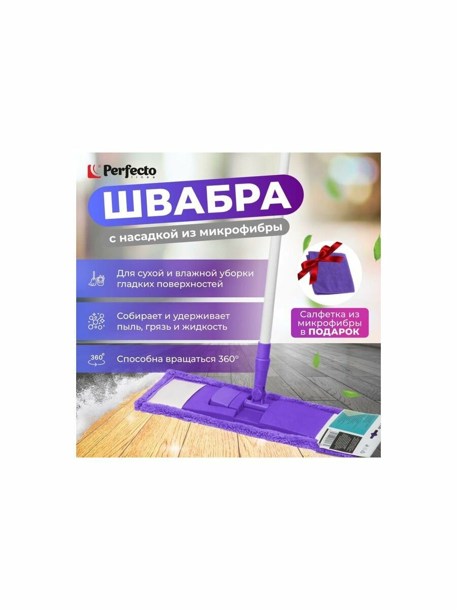 Купить Швабра для пола PERFECTO LINEA (43-39203) с насадкой из микрофибры, лиловая + салфетка из микрофибры 30х30 см, (промо салфетка из микрофибры в подарок)