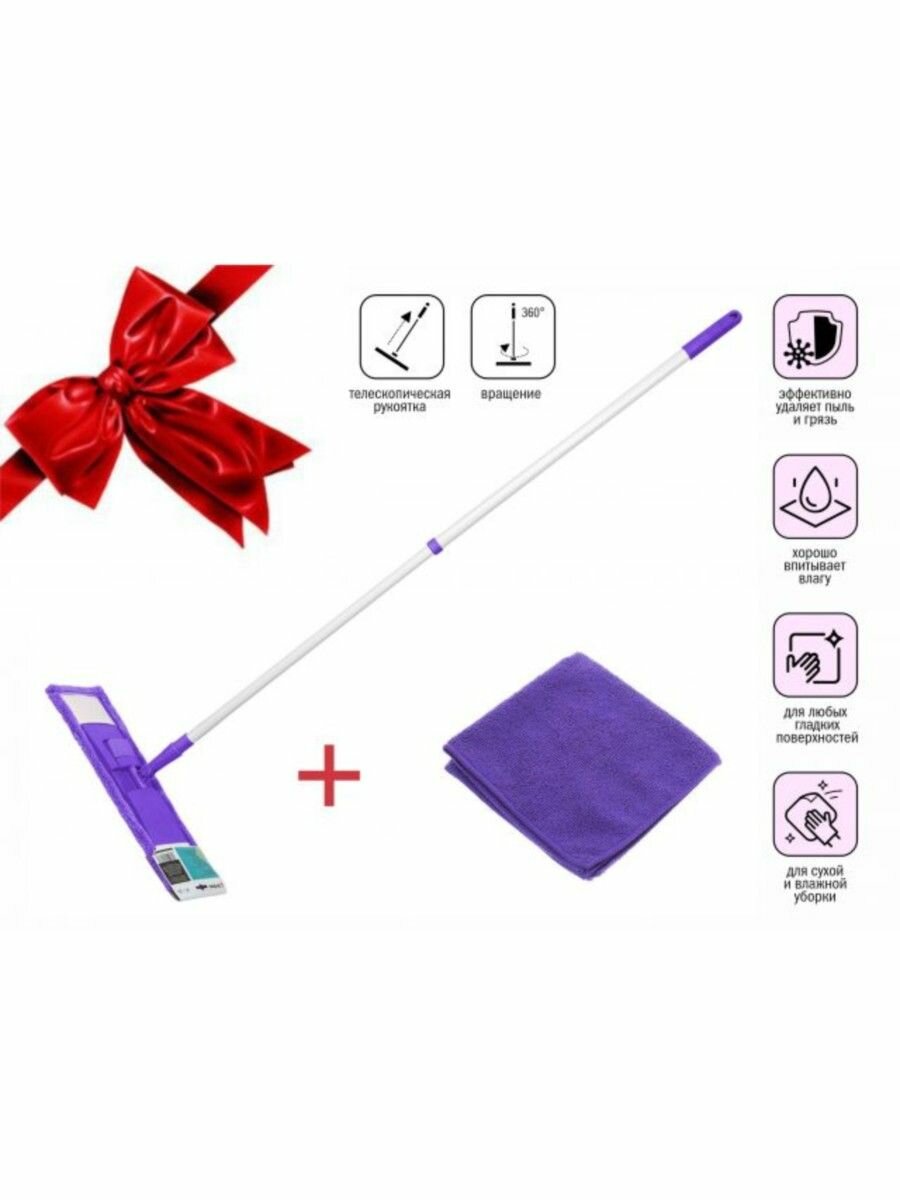 СохранитьШвабра для пола PERFECTO LINEA (43-39203) с насадкой из микрофибры, лиловая + салфетка из микрофибры 30х30 см, (промо салфетка из микрофибры в подарок) интересное: