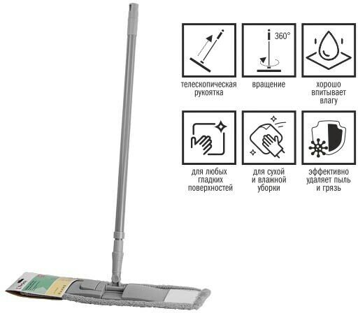 СохранитьШвабра для пола PERFECTO LINEA Solid с насадкой из микрофибры серая (43-492024) интересное: