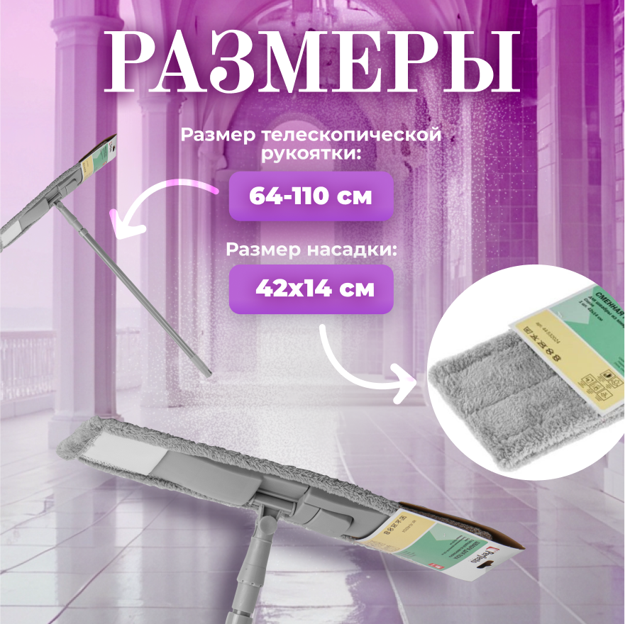 Швабра для пола PERFECTO LINEA (43-39203) с насадкой из микрофибры, лиловая + салфетка из микрофибры 30х30 см, (промо салфетка из микрофибры в подарок)
