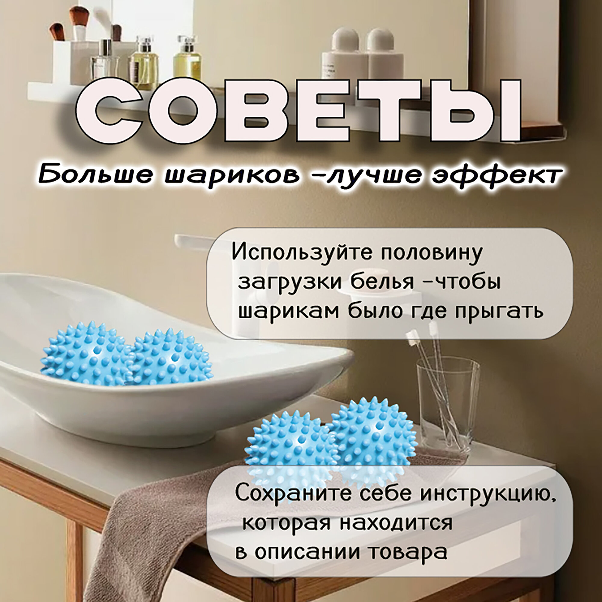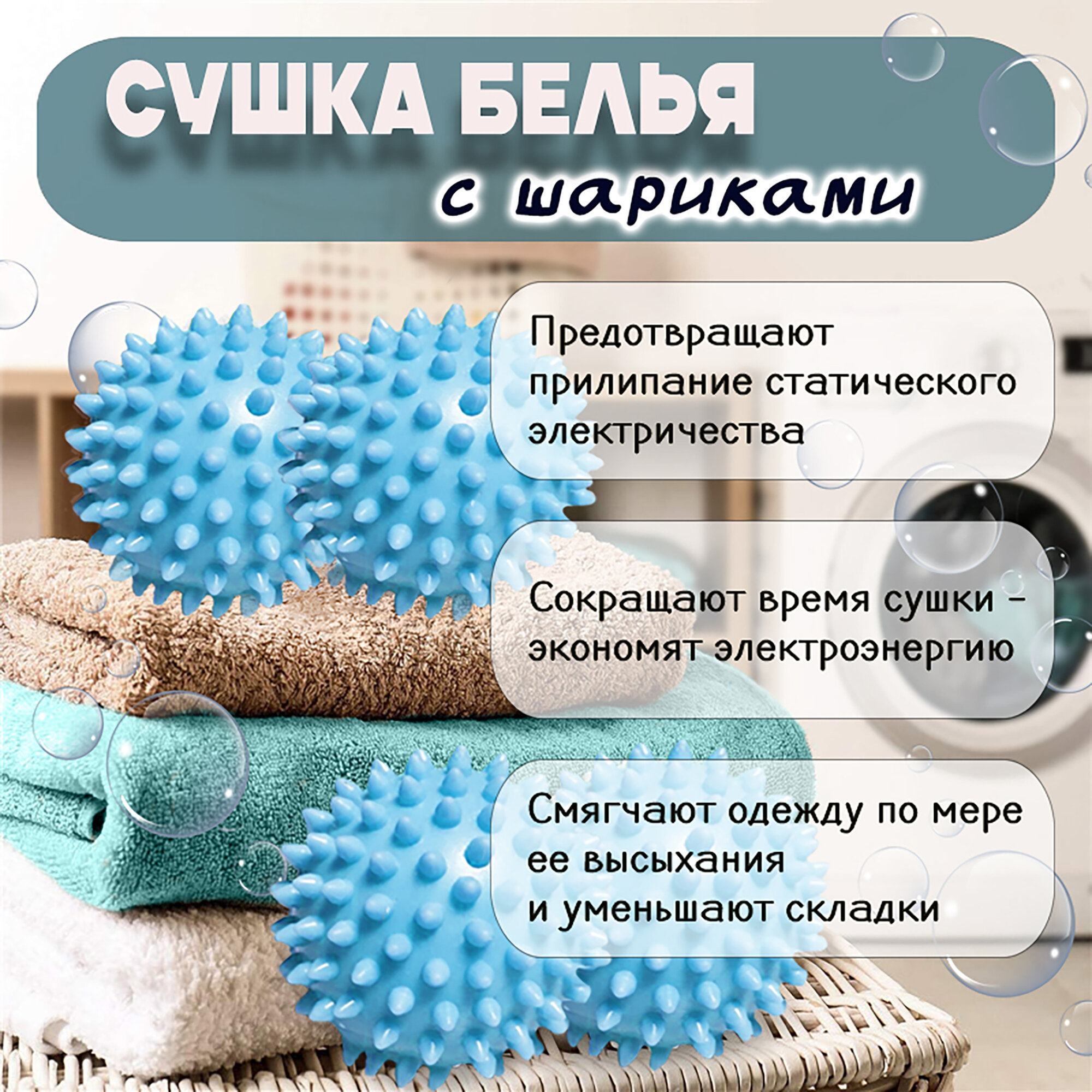 Шарики для стирки и сушки белья и пуховиков, набор 6 шт, цвет небесно-голубой интересное: