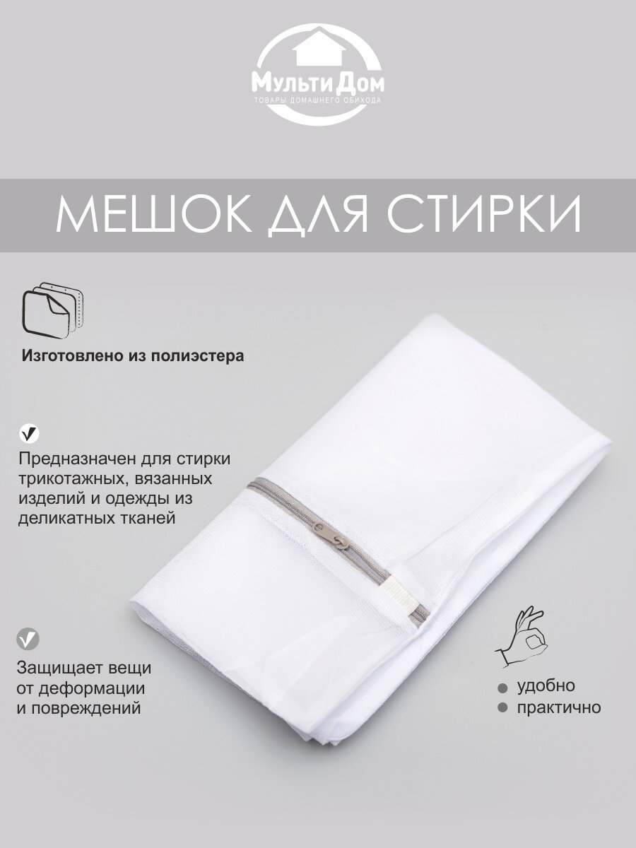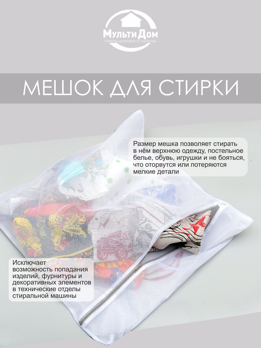 Мешок для стирки, размер 60x60 см, 100 % полиэстер, белый, застежка-молния