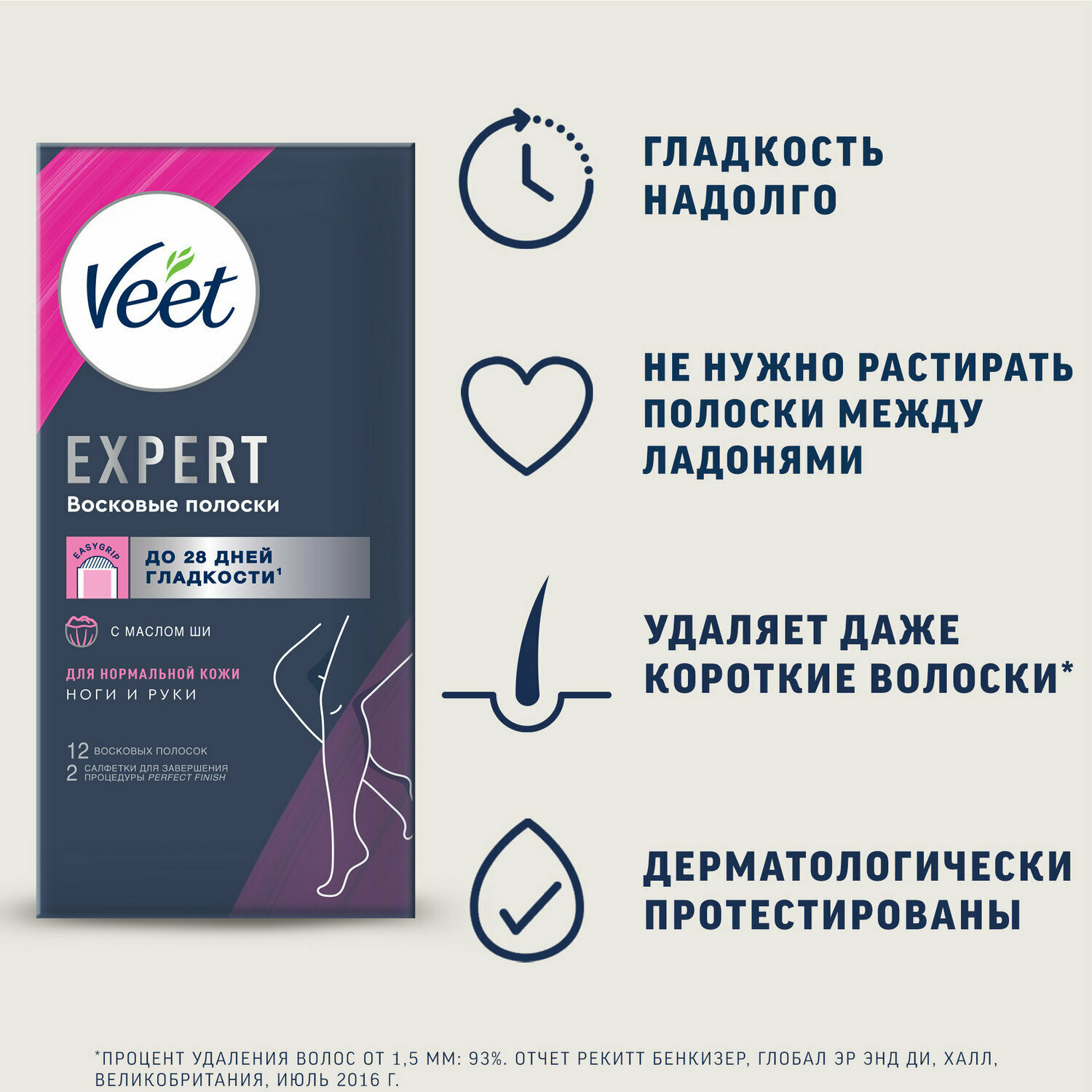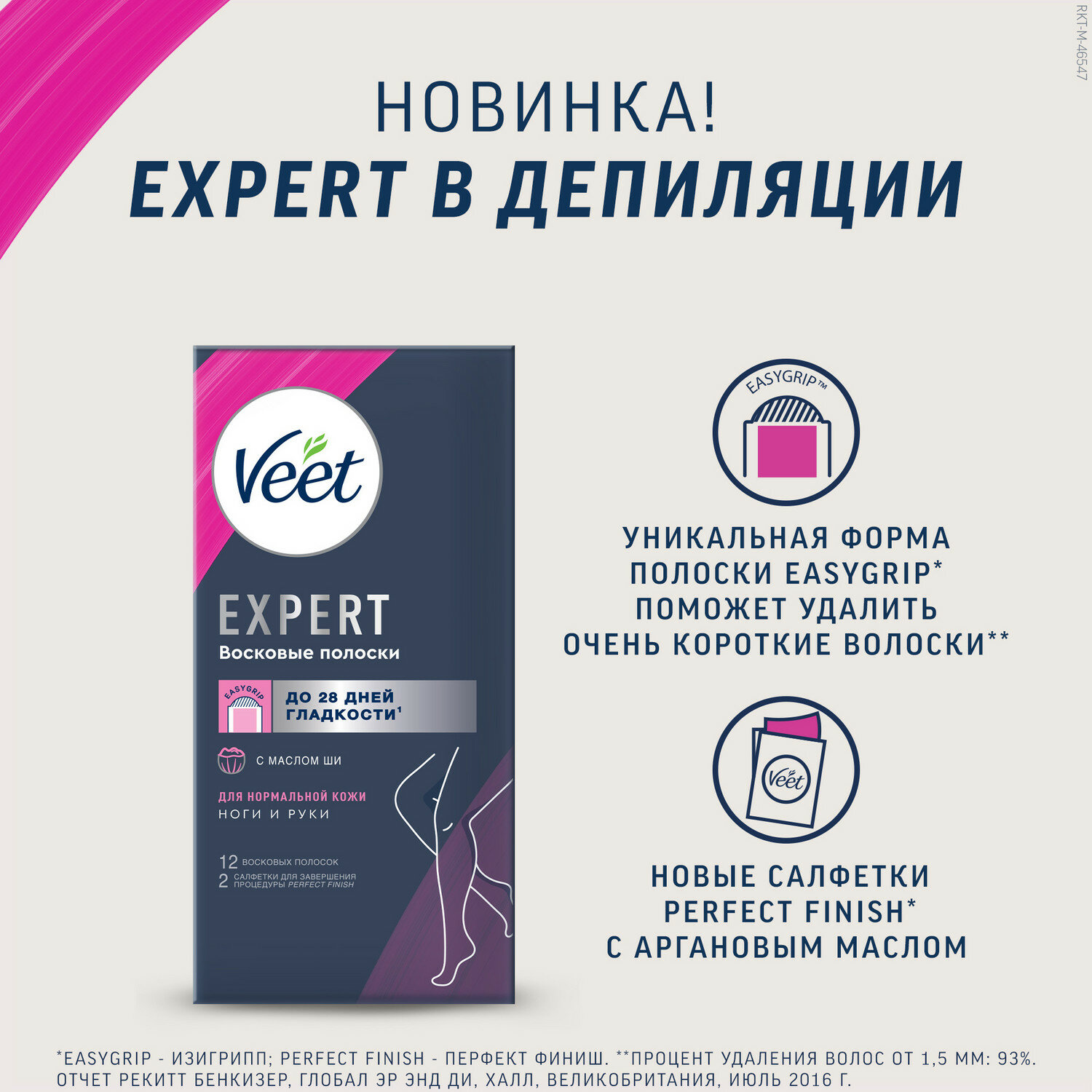Купить Восковые полоски для депиляции Veet Expert для нормальной кожи, 12шт (6шт. сдвоенных полосок)