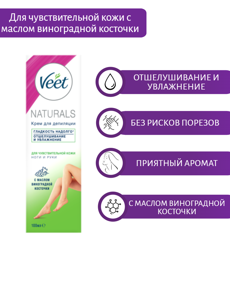 Крем для депиляции Veet Naturals с маслом виноградной косточки, 100мл интересное:
