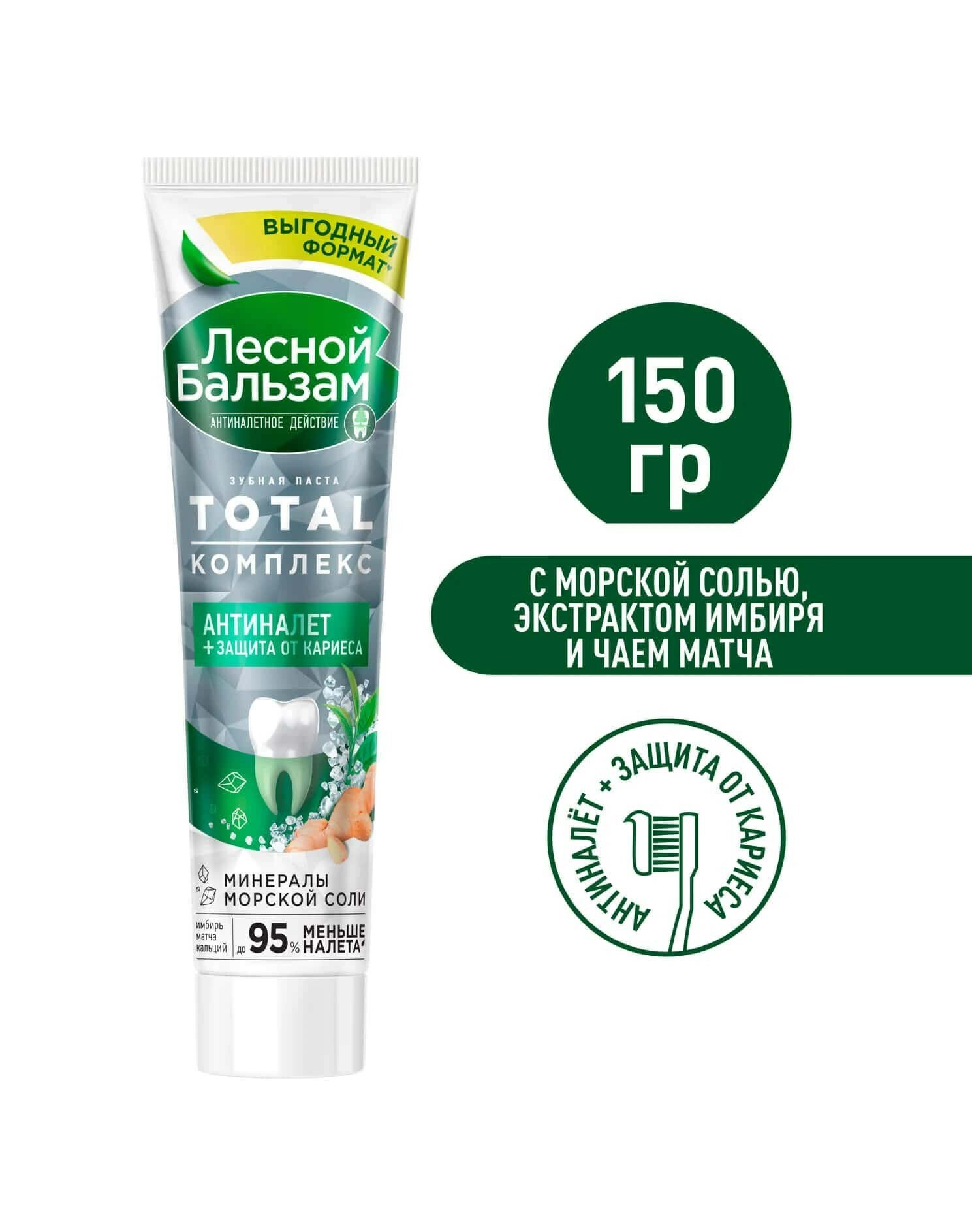 Зубная паста лесной бальзам Total Комплекс с морской солью, экстрактом имбиря и чаем матча, 150г