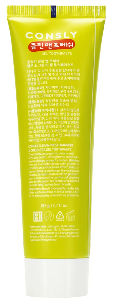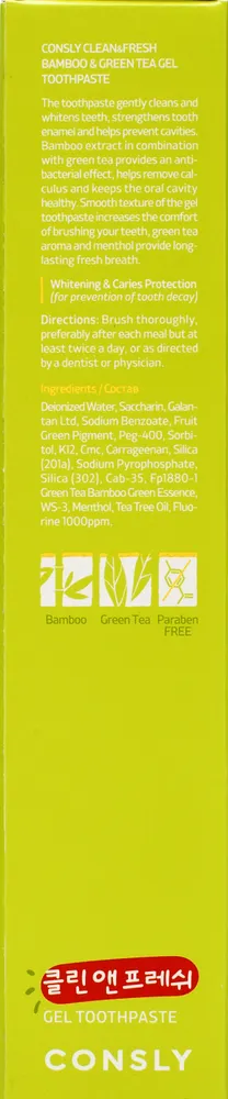 Купить Consly Паста зубная гелевая Clean&Fresh с экстрактами бамбука и зеленого чая Bamboo & Green Tea Gel Toothpaste, 105г