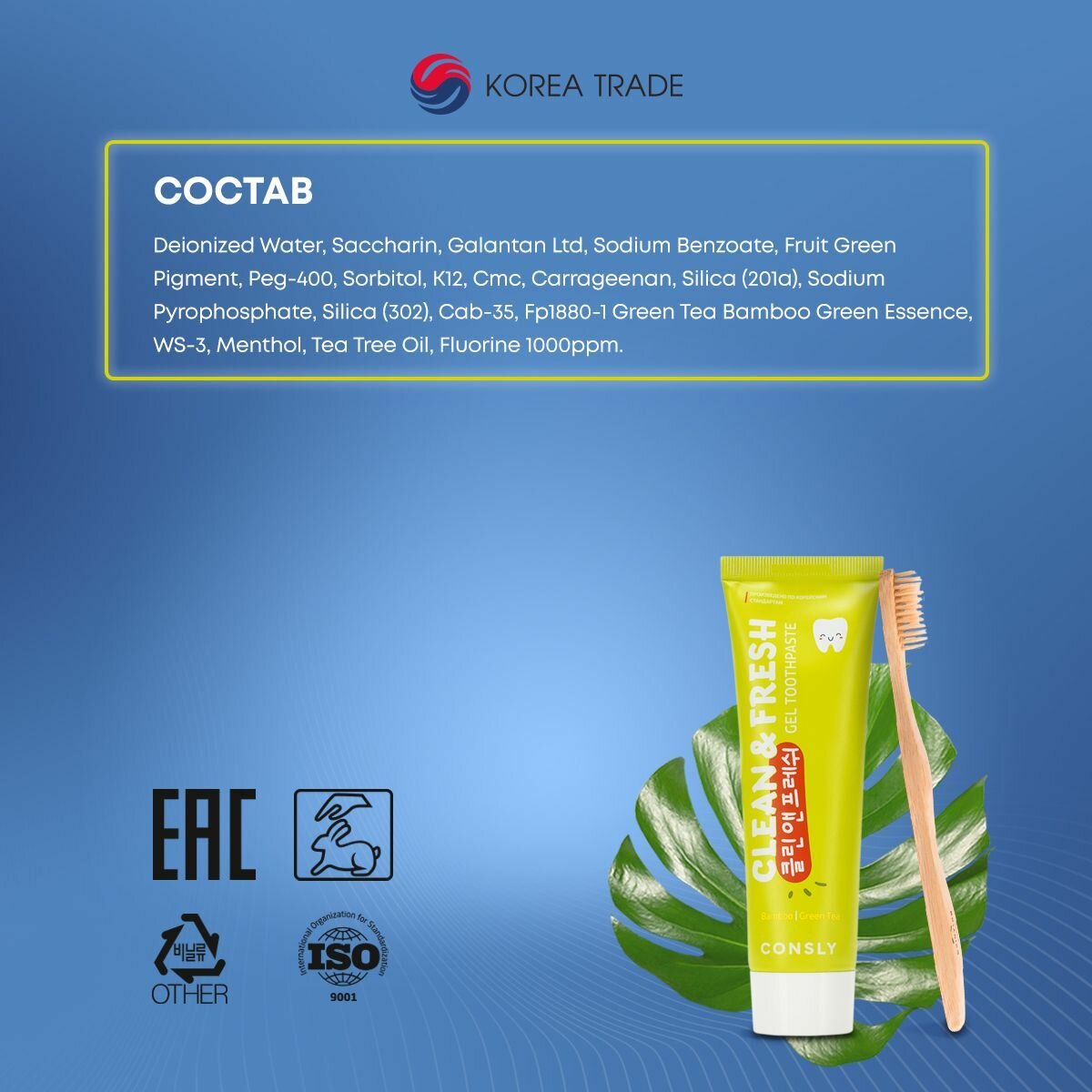 CONSLY Clean&Fresh Bamboo & Green Tea Gel Toothpaste Гелевая зубная паста Clean&Fresh с экстрактами бамбука и зеленого чая