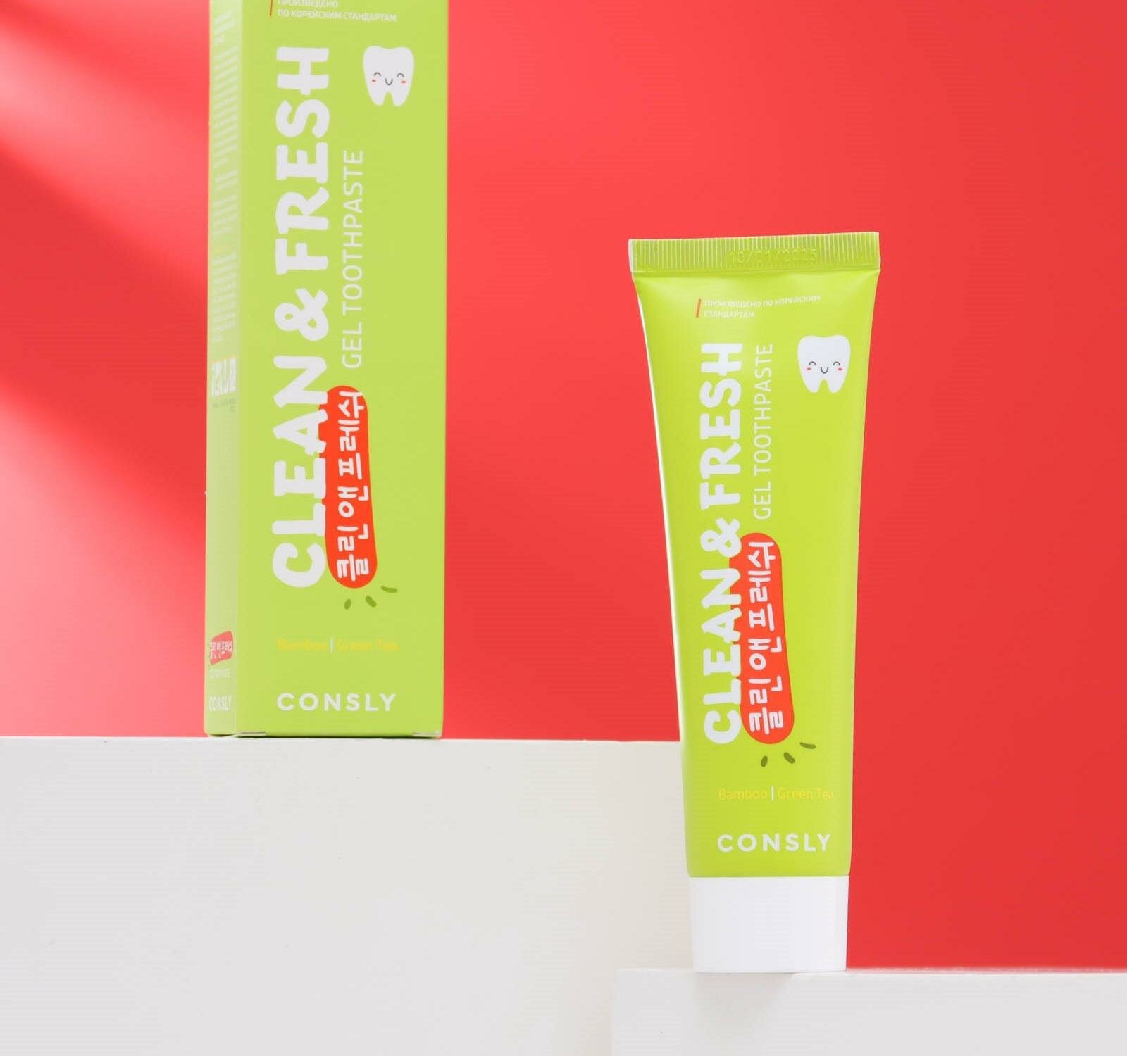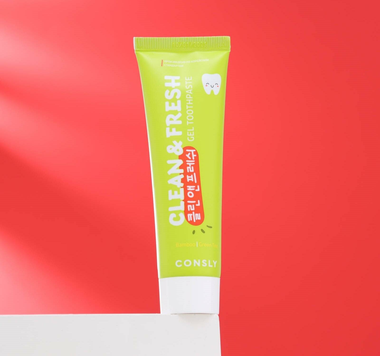 Зубная паста Consly Clean&Fresh с экстрактами бамбука и зеленого чая, 105 г / Корейская зубная паста