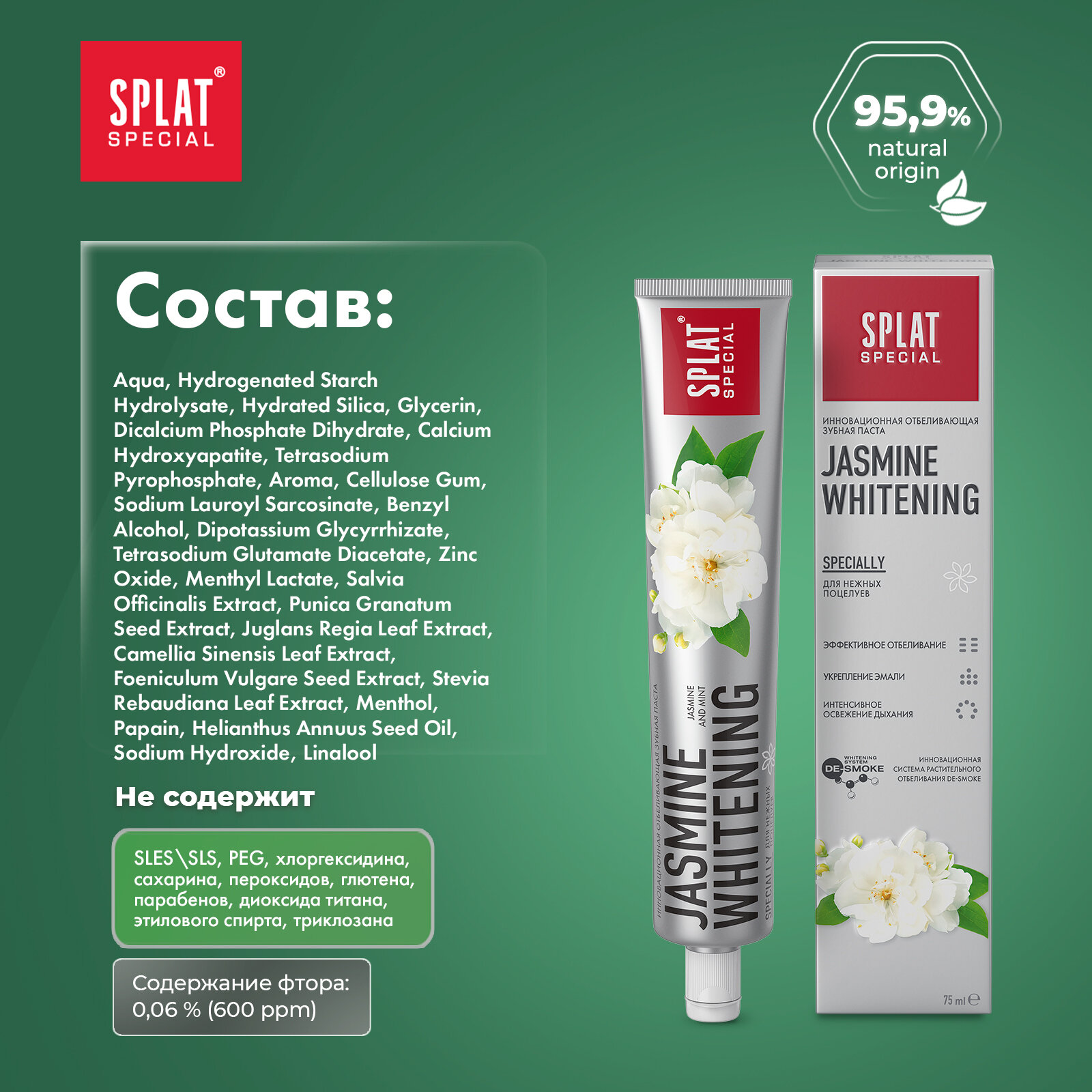 Зубная паста splat Special Jasmine Whitening с жасмином, интенсивное отбеливание, 75 мл