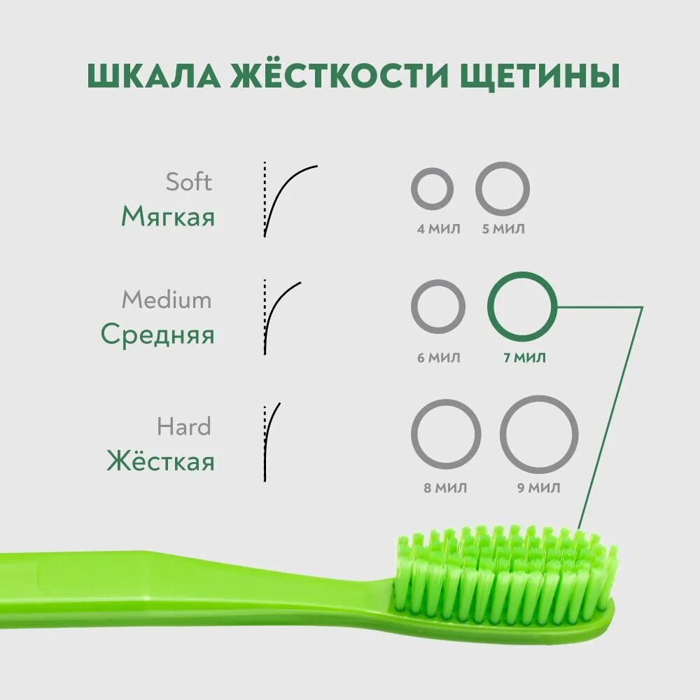 СохранитьЗубная щетка PresiDENT Classic Medium (7 МИЛ) Средней жесткости, зеленый / салатовый, диаметр щетинок 0.18 мм (3 щетки) интересное: