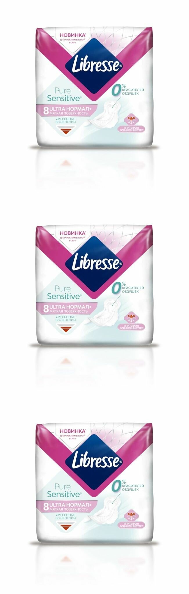 LIBRESSE ULTRA PURE SENSITIVE Прокладки нормал, 8 шт, 3 уп