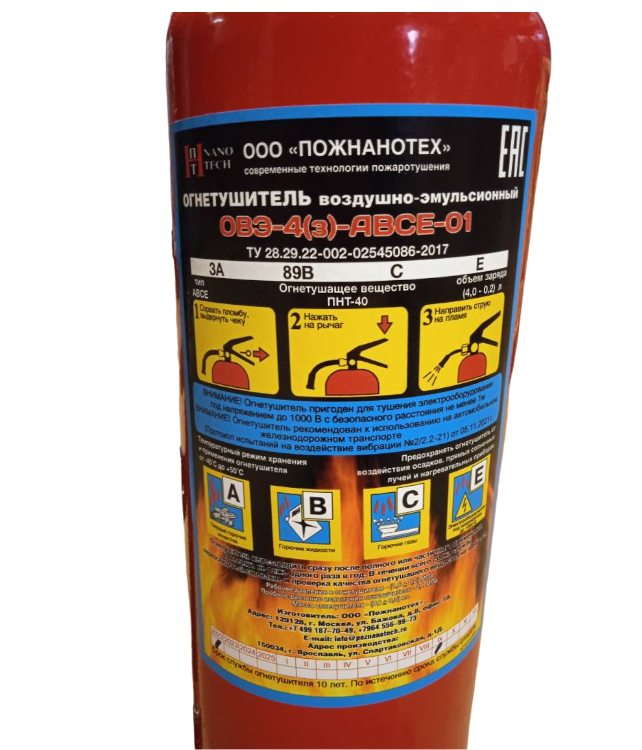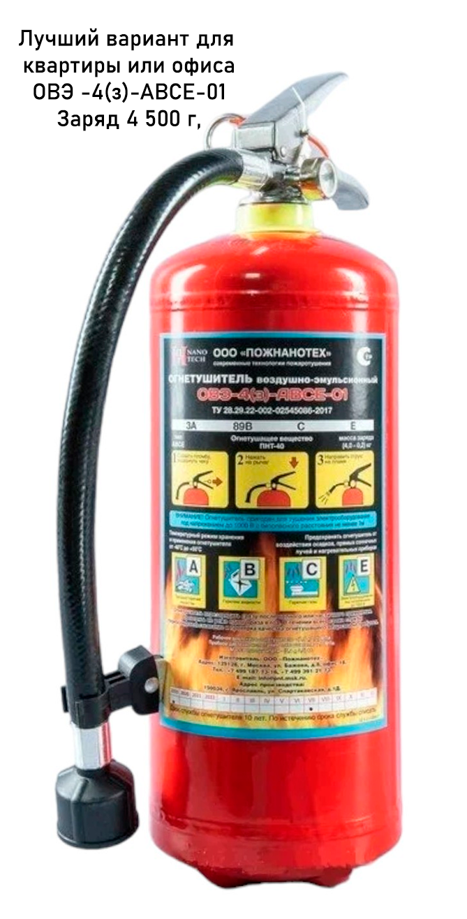 Огнетушитель Воздушно-эмульсионный ОВЭ-4 (з) АВСЕ Заряд ПНТ-01 всесезонный интересное: