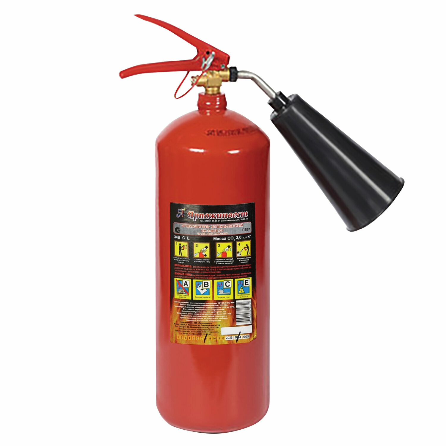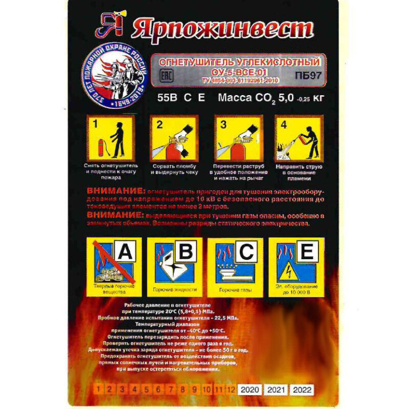 Огнетушитель углекислотный ОУ-5, ВСЕ, закачной, в индивидуальном коробе, ярпож, 52