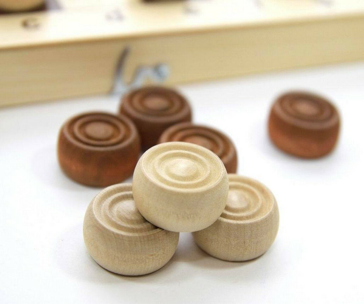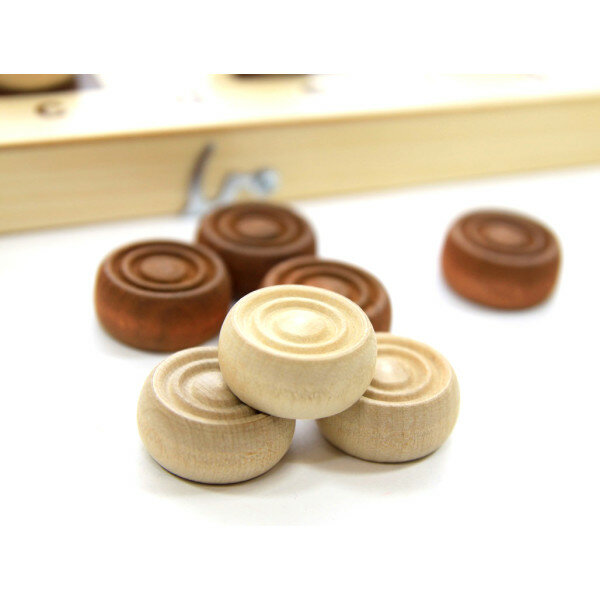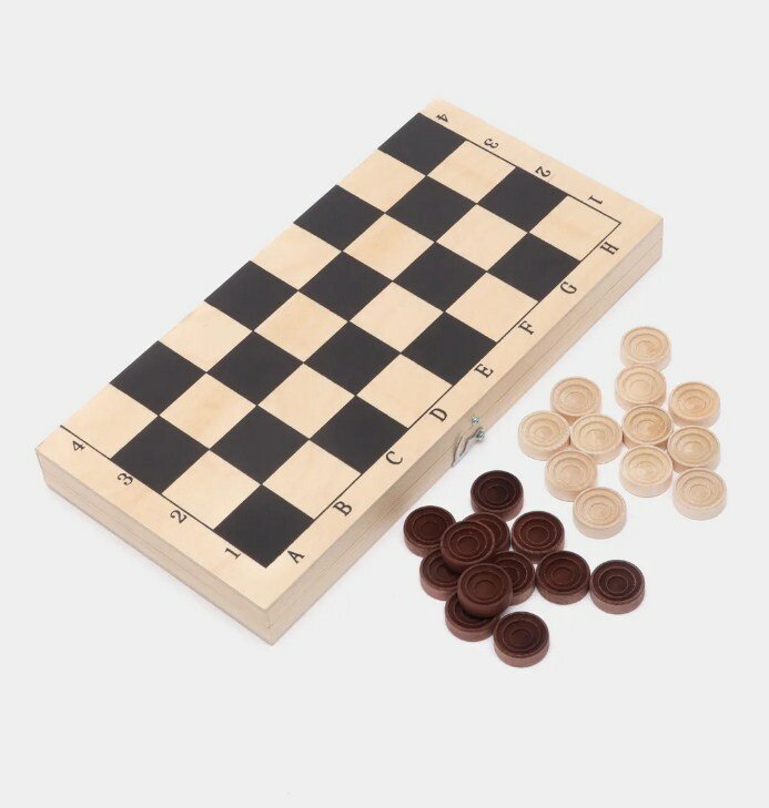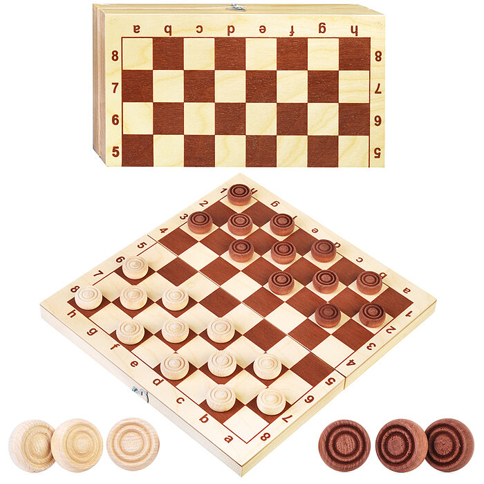 | Подробная комплектация | раскладная деревянная доска на 64 клетки; деревянные шашки - 24 шт |